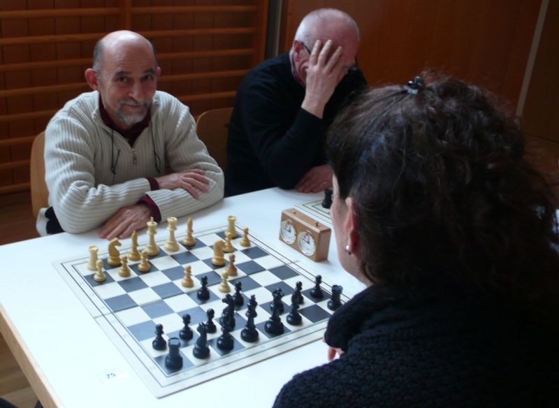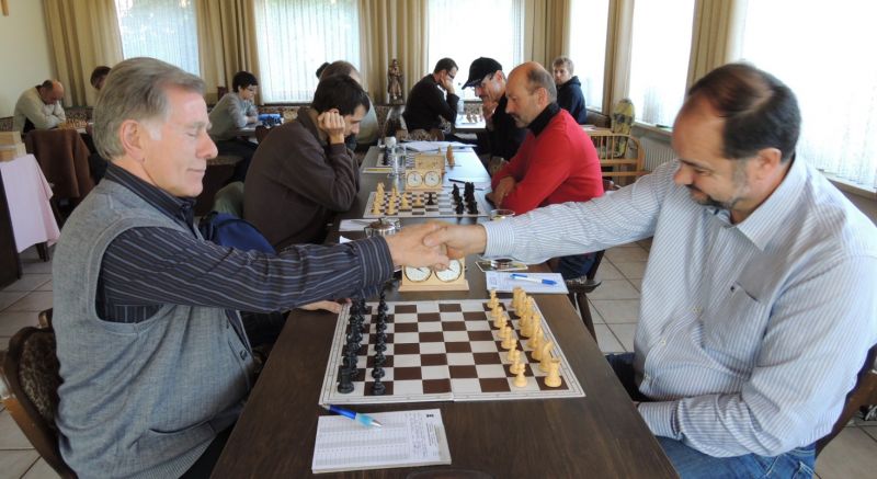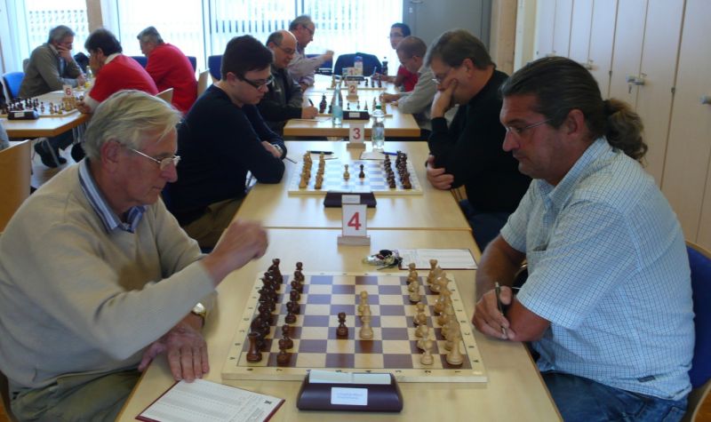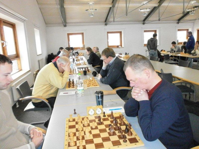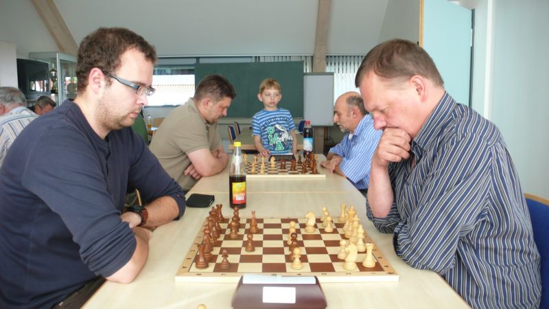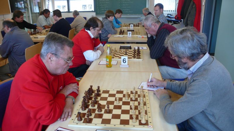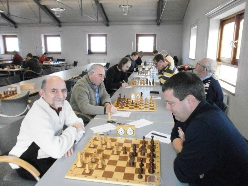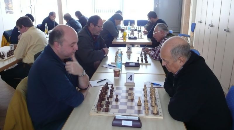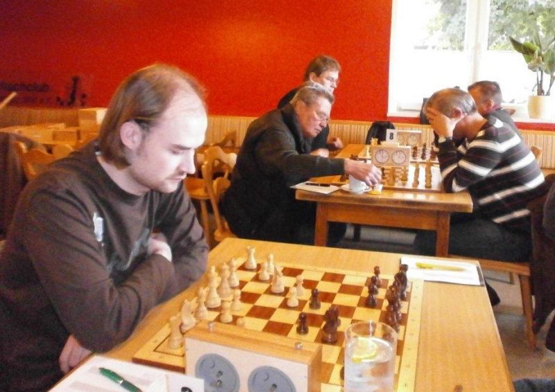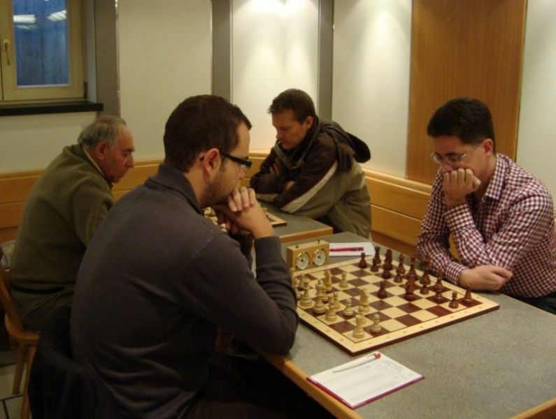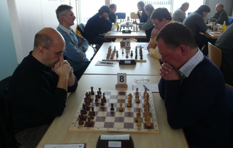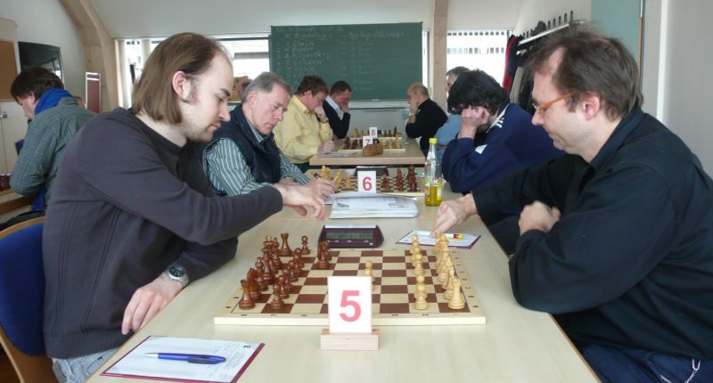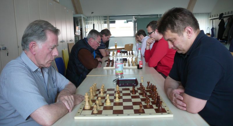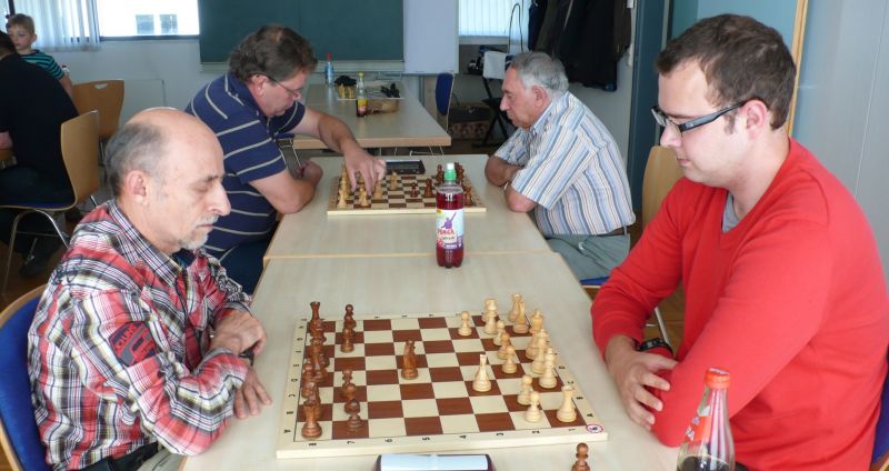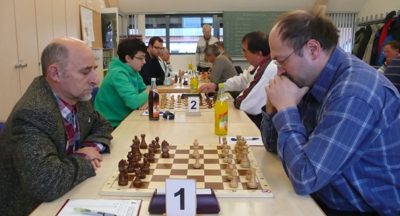 Der Punktereigen auf den Brettern mit den 64 Feldern begann mit Paul Hofmann (Brett 7) und seinem Spanier recht hoffnungsvoll. Ein fataler Bauernzug seines Gegners im Endspiel brachte urplötzlich einen nicht zu stoppenden Freibauern, der volle Punktgewinn wurde dankend angenommen. Bei Borys Bilyavskyy (4) ließen beim Sizilianer identisches Material und Stellungsbild keine Gewinnversuche zu, somit friedliche Punkteteilung. Am Spitzenbrett von Vladimir Simin musste beim Thema Benoni seines Gegners im Endspiel Figurenverlust notiert werden, Punkt und Ausgleich an Straubing. Tobias Schoepe (2) und sein Gegenüber servierten ein geschlossenes Damenbauernspiel mit wenig Atmungsluft für beide Seiten, somit Waffenstillstand mittels friedlichem Remis. Waldemar Golder (3) bot seinem Brettnachbarn eine Englische Partie an. Dieser rührte fleißig an seiner Betonstellung, trotz Mehrbauer war kein durchkommen möglich, somit erneut eine Punkteteilung. Nach diversen Stunden harter und spannender Duelle neigte sich das Pendel zugunsten der Straubinger. Ronald Kühne (8) versuchte es als Nachziehender mit einem Sizilianer /Sweschnikow. Bauernverlust im Mittelspiel und ein zu passives agieren kosteten schließlich den vollen Punkt. Paul Gehann (5) durfte eine Pirc-Ufimzew-Verteidigung bekämpfen, wobei das Gefecht bis ins Endspiel mit Materialgleichstand versehen war. Ein feindlicher Bauer war jedoch überraschend in der Lage, sich ohne Furcht durchzumogeln, das brachte Brett- und Mannschaftssieg für Straubing. Tobias Denk (6) kam mit seinem Königs-Inder als letzter ins Ziel. Das verspeisen von drei Bäuerlein bis in die Endspielphase brachte für ihn letztendlich die Gewinnentscheidung, es war leider nur mehr eine Resultatsverbesserung für die Ergoldinger Gäste.