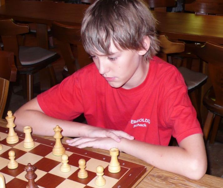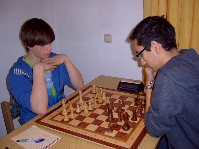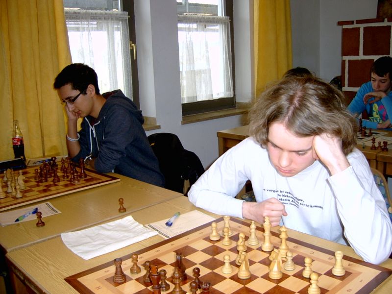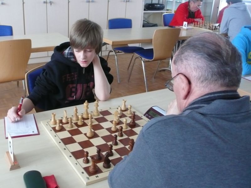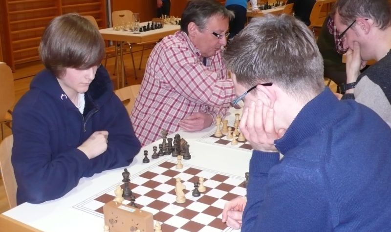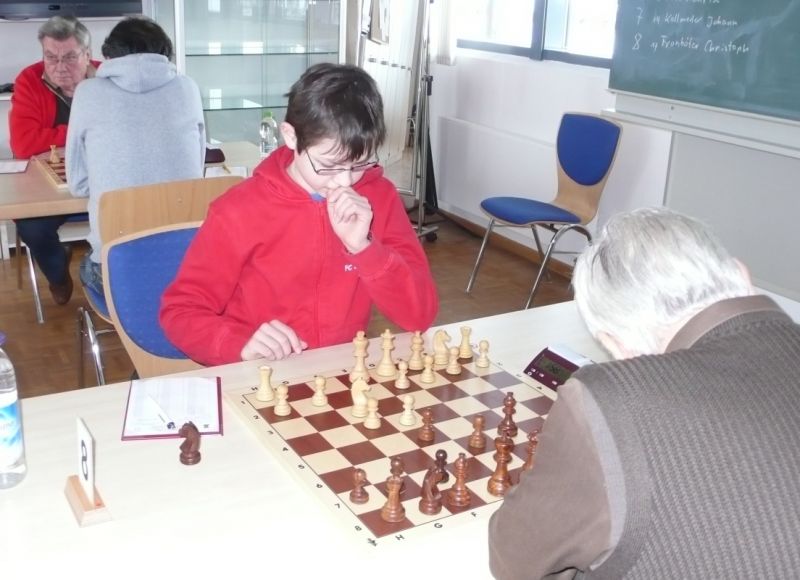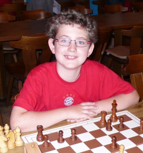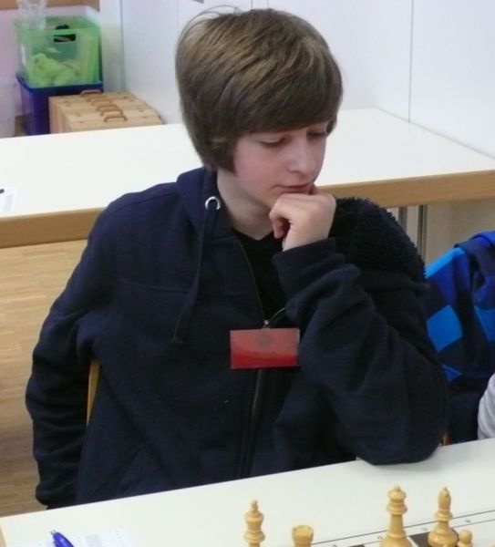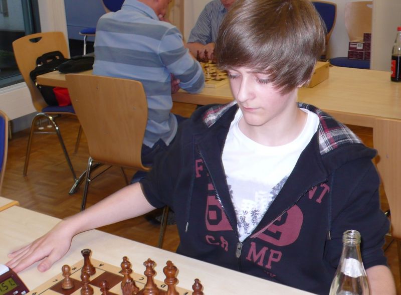 Der noch 12-jährige Henrik Fesl (1416) hatte in der ersten Runde natürlich gegen den Lokalmatador Uwe Kleibel (2088 DWZ) keine Chance. Er hielt zwar recht wacker mit und lag bis zum 14. Zug in etwa gleichauf. Dann aber spielte Uwe seine Routine aus und gewann im 32. Zug die Qualität. Sein Turm war schließlich im Endspiel Henriks Springer klar überlegen und nach 45 Zügen und 1:57 Stunden war das Match für den Ortenburger sicher gewonnen. Henrik spielte diese erste Partie noch viel zu schnell, er verbrauchte für die 45 Züge nur 38 Minuten, was sich aber im Verlauf des Turnier bessern sollte. In der zweiten Runde war Henrik eigentlich Favorit gegen Christoph Auer (SC Ortenburg, 1156). Er holte sich im 14. Zug einen von Christoph "vergessenen" Bauer ab und versuchte diesen kleinen Vorsprung mit Abtäuschen bis ins Bauernendspiel zu behaupten, was ihm auch gelang. Leider versäumte er ab dem 38. einige Gewinnzüge und musste nach 59 Zügen und 2:24 Std. ins Remis einwilligen. In der dritten Partie war der DWZ-lose Winfried Bartsch der Gegner. Henrik hatte etwas mehr vom Spiel, aber nach 41 Zügen und 2:42 Std. einigte man sich in ausgeglichener Stellung wohl zurecht aufs Remis. Am letzten Tag lief Henrik dann zur Hochform auf und schaffte noch zwei Siege. Zuerst gegen Dr. Michael Schäfer (SF Gotteszell, 1187), als er im 23. Zug wieder einen ungedeckten Bauer schlagen konnte. Wieder tauschte er alles ab, aber diesmal konnte er seinen Mehrbauer durch Zugzwang gewinnbringend nach 53 Zügen in 2:24 Std. zum Sieg verwerten. Henrik blieb seinem Stil auch in der letzte Partie gegen Rüdiger Bartsch treu. Im 29. Zug gewann er, diesmal durch eine Fesselung, einen Bauer. Dann tappte der Ortenburger in eine Mattfalle am Königsflügel und nach 52 Zügen und 3:19 Std. war das Match siegreich beendet. Mit ebenfalls 3 Punkten wurde Henrik 20.igster, mit ebenso vielen Punkten wie Ronny und auch genauso viel Buchholz und auch in der Drittwertung waren die beiden gleich. Vermutlich hat der Computer aber die drei Siege von Ronny, gegenüber den zwei Siegen und zwei Remis von Henrik den Vorrang gegeben. In der inoffiziellen DWZ-Auswertung gewann Henrik 17 Punkte hinzu und steht jetzt somit auf 1433. Bei der Siegerehrung erhielt Henrik den U14-Pokal und Ronny als zweitbester den U18-Pokal, weil Manuel Albrecht (SK Landau-Dingolfing) als bester Spieler der U1600 ausgezeichnet wurde.