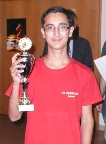 Er verbesserte sich von Startplatz 6 um drei Plätze nach oben und musste sich nur Uli Weller (SK Buchloe, 1451) und Abhinav Senthil (MSA Zugzwang München, 1282) beugen. Auch Aditya Tarade (809) verbesserte seinen 13. Startplatz deutlich und wurde am Ende mit 4,5 Punkten guter Achter. Clemens Ottmair war in Töging mit 3 Punkten 18. von 25, diesmal mit 3,5 Punkten zwar ebenfalls 18., aber von 31 Teilnehmern, also wieder eine leichte Steigerung. Andy Zhang belegte mit 2,5 Punkten Rang 26. Jakob Klein (828) hatte sein Pulver nach zwei Siegen (in der ersten Runde gegen Clemens) verschossen, es folgten leider 5 Niederlagen. Anni Zhang belegte in der U14 (19 TN) mit 3 Punkten den 16. Platz, also durchaus zufriedenstellend.