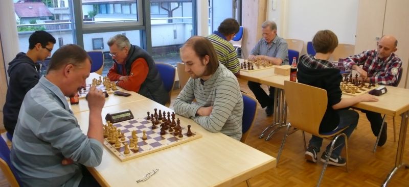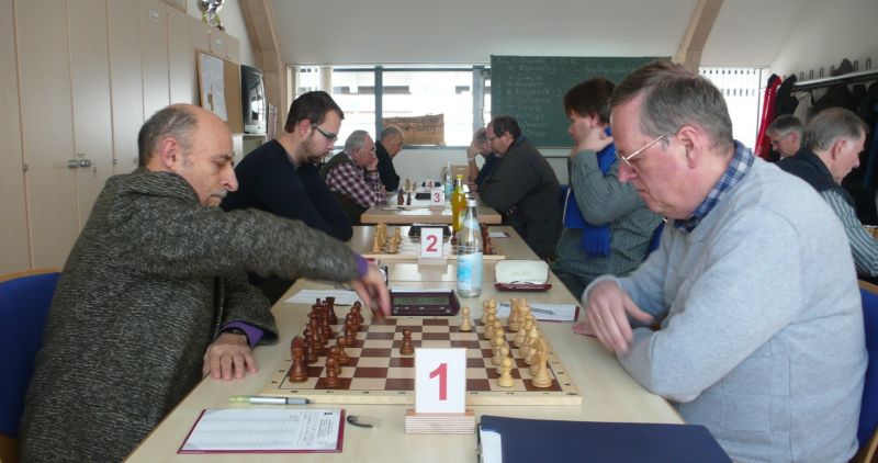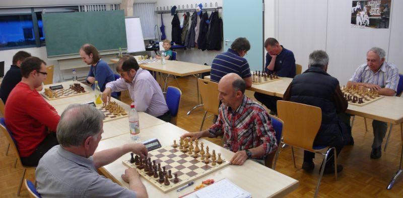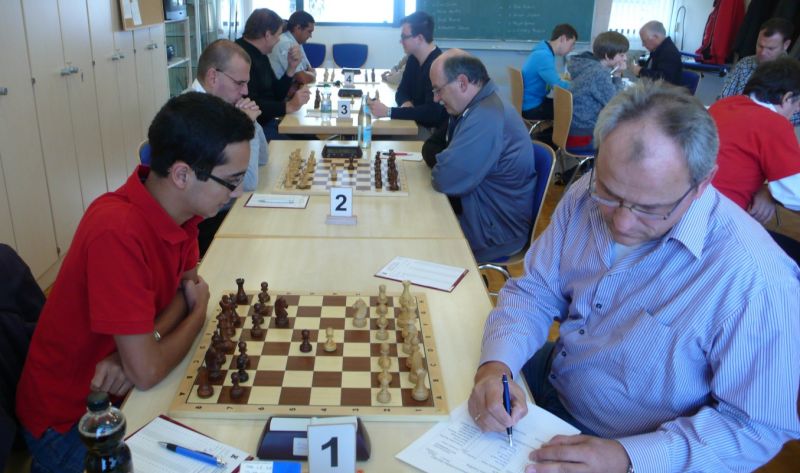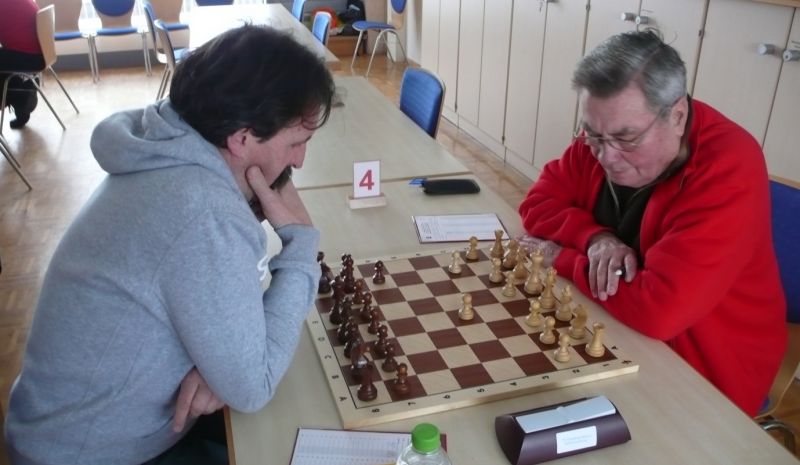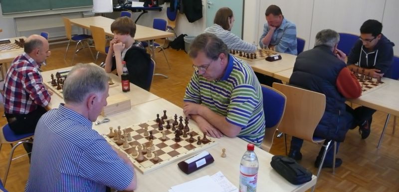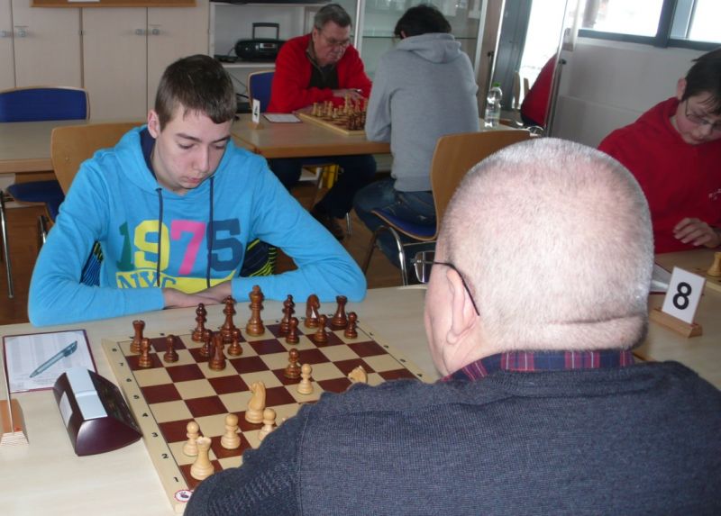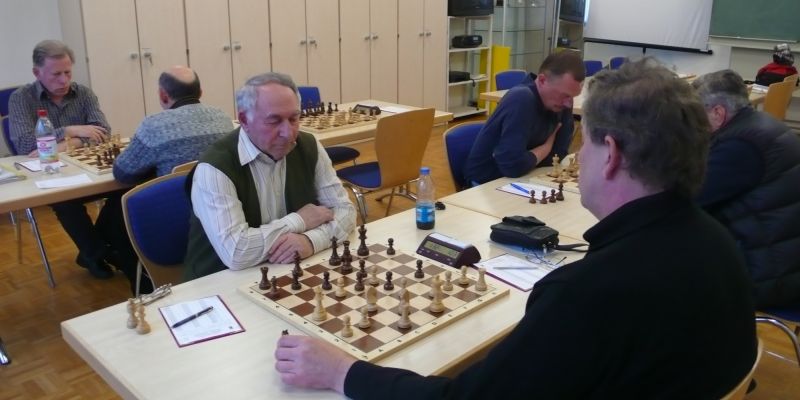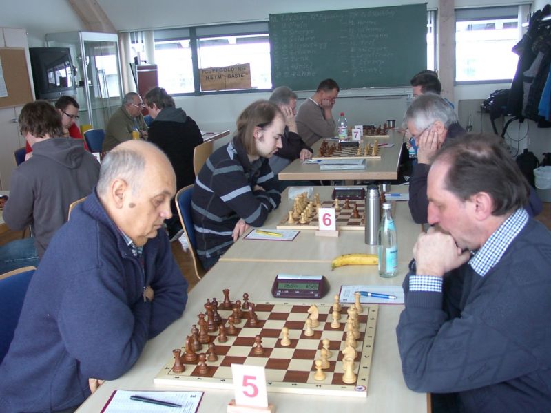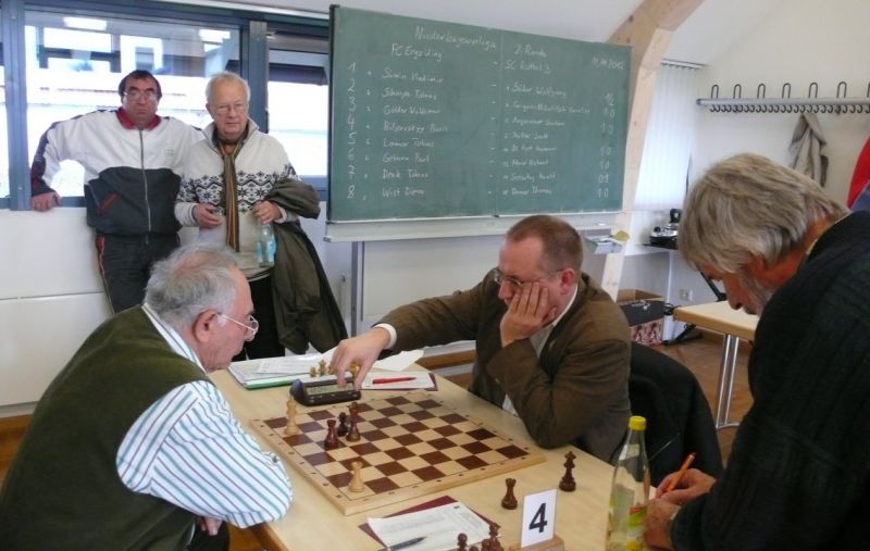 Das erste positive Ergebnis meldete Waldemar Golder (Brett 3). Sein Sizilianer brachte ziemlich früh Figurengewinn, somit ein lockerer Punktgewinn zu Beginn der Runde. Am Spitzenbrett servierte Vladimir Simin einen Königsinder, nach einigem Eröffnungsgeplänkel wurde die Friedenspfeife geraucht d.h. friedliche Punkteteilung. Bei Paul Gehann (6) stand ein geschlossener Sizilianer auf dem Programm. Um seine eingeschlossene Dame zu retten, musste sein Brettnachbar einen Läufer opfern und das war natürlich der Anfang vom Ende. Tobias Schoepe (2) wurde ein Sizilianer vorgesetzt, mit diesmal großer Spielfreude offerierte er im Finale seinem Gegenüber ein undeckbares Matt mit Punktverlust. Auch Tobias Laimer (5) begeisterte als Nachziehender alle Mitspieler mit seinem Damengambit. Doppelter Figurengewinn schon in der Eröffnungsphase und im Mittelspiel ließen seinen verzweifelten Kontrahenten die weiße Fahne hissen, der Mannschaftssieg war bereits nach fünf Partien entschieden. Die einzige verschmerzbare Niederlage musste Tobias Denk (7) einstecken. Seine gewählte Caro-Kann Verteidigung löste einen zielstrebigen und sehenswerten Königsangriff seinen Gegners aus, Turmverlust und ein nicht zu parierendes Matt waren die Folge. Dieter Wist (8) war trotz häuslicher Müdigkeit am Brett hellwach, eroberte beim Sizilianer seines Mitstreiters die Qualität und letztendlich vollen Punktgewinn. Als Letzter quälte sich Borys Bilyavskyy (4) mühsam ins Ziel. Das angenommene Damengambit des Rottalers stellte ihn vor einige Probleme, mit Mühe konnte er doch noch ein Remis ergattern.