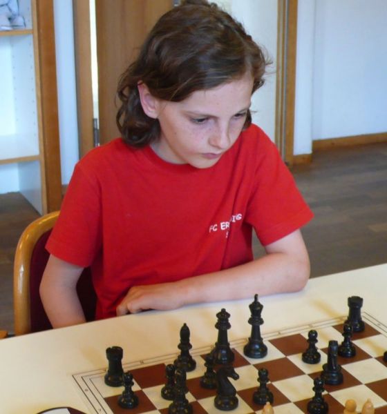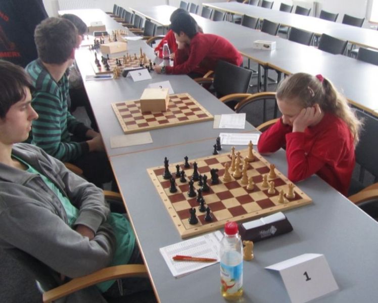 Mit zwei "Mann" Ersatz, blieb die erwartete Niederlage nicht aus. Trotzdem war mehr "drin". Eine vorzügliche fast fehlerfreie Partie lieferte am Spitzenbrett Maria Kühne ab. Sie konterte als einzige die Lieblingseröffnung der Langquaider Spieler perfekt und kam schon gut aus der Skandinavischen Verteidigung heraus. Im 9. Zug gewann sie mit einer Bauerngabel eine Figur, eroberte mit einem geschickten Abzug im 18. Zug einen Turm und gewann nach 44 Zügen. Davor hatten an Brett 2 und 4 eigentlich Anni Zhang und Jenny Pietzuch ganz passabel gespielt. Anni übersah dann im 22. Zug eine gegnerische Springergabel, der die Quali kostete, verlor dann die Übersicht und wurde im 24. Zug matt gesetzt. Jenny, die wegen Krankheit eines Spielers kurzfristig einsprang, eroberte einen Bauer und lag bis zum 34. Zug leicht im Vorteil. Dann unterlief ihr ein verhängnisvoller Fehler, und dann noch einer und nach 46 Zügen war die Sache leider aufgabereif. Andy Zhang gewann zwar an Brett 3 im 6. Zug eine Figur, übersah aber stattdessen, dass er auch die Dame hätte nehmen können. Er verlor dann seine gewonnene Figur und noch eine dazu und übersah im 19. Zug ein einzügiges Matt. Der Langquaider Trainer bat uns, mit zwei Ersatzspielern zu kommen, die (natürlich) ohne Wertung Praxiserfahrung sammeln sollten. Der 7-jährige Yannick Hamo verlor klar, aber Stefan Mundani konnte seine Partie für sich entscheiden. 18 Jugendliche des FCE waren somit an diesem Sonntag im Einsatz!