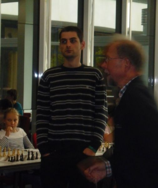 Zu den eingeladenen Gästen zählte auch Anton Königl von FC Ergolding. Als Nachziehender hatte er sich so 20 Züge Ausdauer vorgenommen, doch das Duell nahm einen anderen Verlauf! Im 35.Zug bot Anton bei Vorteil von zwei Zentrumsbauern Remis, was der GM erleichtert sofort annahm. Eine häusliche Fritz-Analyse ergab bei "richtigem" Weiterspiel ein Plus von rund 5 Punkten. Trotzdem war Anton mehr als zufrieden, frei nach dem Motto: lieber den Spatz in der Hand, als die Taube auf dem Dach!