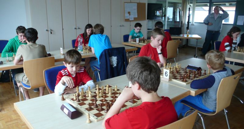 Jugendleiter Helmut Gmeinwieser konnte heuer 29 Teilnehmer bei "seinen" Vereinsmeisterschaften begrüßen, welcher Verein bringt schon soviele Jugendliche an die Bretter? Es wurden 7 Runden im Schweizer System mit 20 Minuten Bedenkzeit und der Dreipunkteregel gespielt.