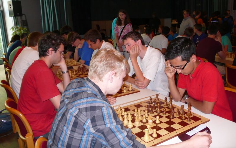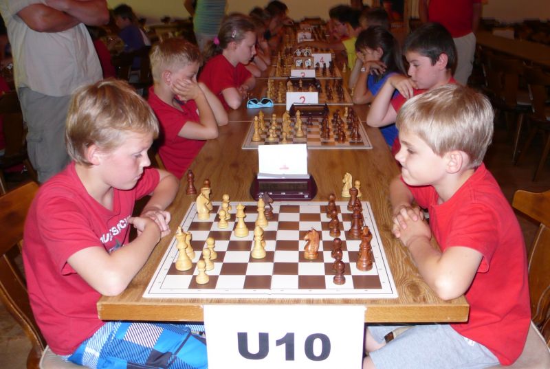 Der haushohe DWZ-Favorit, Tobias Schoepe, machte beinahe einen Durchmarsch und gab nur ein Remis gegen Henrik Fesl ab. Mit 19 Punkten war Tobias am Ende um 4 Punkte voraus der klare Sieger und kann sich erstmals mit dem Titel "Vereinsjugendmeister" schmücken. Hinter ihm tobte ein harter Kampf um die Plätze, den schließlich überraschend Cora Klinkenberg gewann und mit 15 Punkten U14-Vereinsmeister wurde. Sie verlor nur gegen den Sieger und gegen Henrik. Johann Kollmeder (ebenfalls 15 Punkte) passierte in der 2. Runde gegen Aditya Tarade ein "Fingerfehler", denn er musste, in Führung liegend, nach einem "unmöglichen Zug" seine Dame einstellen. In der 5. Runde gelang ihm ein Endpielsieg gegen Henrik, als dieser sein Remisangebot ablehnte. Den möglichen 2. Rang vergab Henrik Fesl in der letzten Runde, als er nach zähen Kampf nicht über ein Remis gegen den Fünften, Daniel Lichtmannecker, hinauskam. Beide hatten am Ende 14 Punkte, was Daniel zum U12-Titel ausreichte. Einen Punkt dahinter dann fünf Spieler, angeführt vom noch DWZ-losen Patrick Sowka, der damit überraschend den U10-Meistertitel vor Sebastian Astner gewann. Auf Rang 9 folgte Matthias Schoepe vor Christoph Fronhöfer. Elfte wurde Maria Kühne, die nach einen Sieg, gleich drei Niederlagen einstecken musste, bevor sie noch dreimal gewann und damit 12 Punkte erreichte. Hinter Jakob Klein (12 Pkt.) folgte schon der neue U8-Meister Felix Handschuh mit ebenfalls 12 Punkte. Danach dann Clemens Ottmair und Simon Pusl mit jeweils 10 Punkten. Die Siegerehrung für alle Vereinsmeistschaften, auch die der Jugend, finden wie immer bei der Mitgliederversammlung am Dienstag, den 17.09. um 19°° in den Ergoldinger Stuben statt.