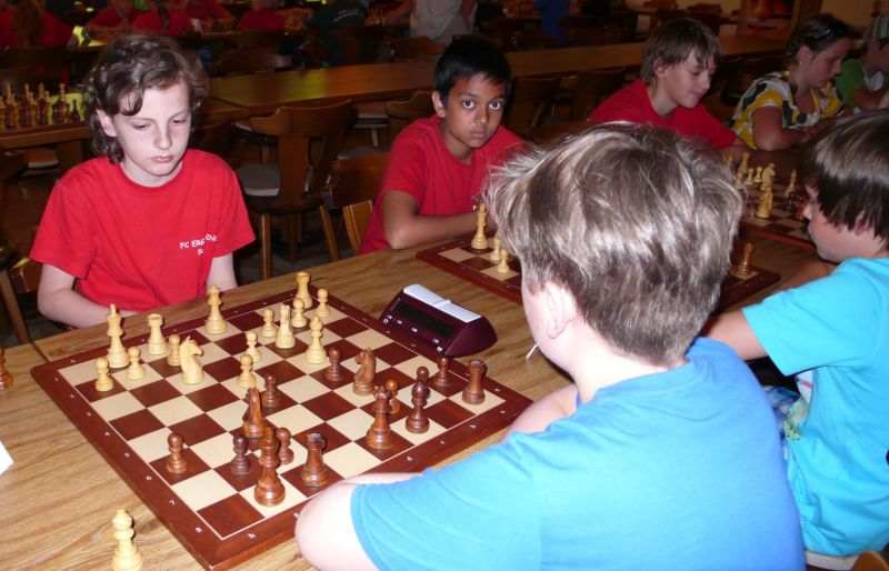 Bereits zum zwölften Mal lud die Jugendabteilung im Rahmen des Ferienprogramms zu einem Schachnachmittag ins Bürgerhaus ein. Mit 21 Teilnehmern, wovon acht aus der eigenen Abteilung kamen, wurde eine sehr gute Resonanz erzielt. Jugendleiter Helmut Gmeinwieser begrüßte die Kinder und Jugendlichen zwischen sechs und 13 Jahren und stellte kurz die sehr erfolgreiche Jugendabteilung des FC Ergolding vor, die in Niederbayern schon seit einigen Jahren eine Spitzenposition einnimmt. Danach ging es schon zur Sache und die Kinder konnten bei idealem Schachwetter untereinander und mit Begeisterung ihre Kräfte am königlichen Spiel messen. Abteilungsleiter Eckart Dietl, Stellv. Abteilungsleiter Anton Königl und der Jugendleiter unterstützten vor allem die "Neuen" mit wichtigen Tipps. Den Nichtmitgliedern wurde angeboten, jeweils dienstags während der Ferien ab 16:30 und nach den Ferien ab 15:30 an einem kostenlosen Schnuppertraining teilzunehmen, Infos unter 0871-77800.