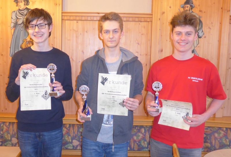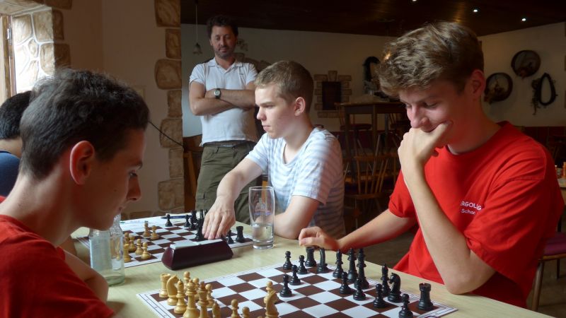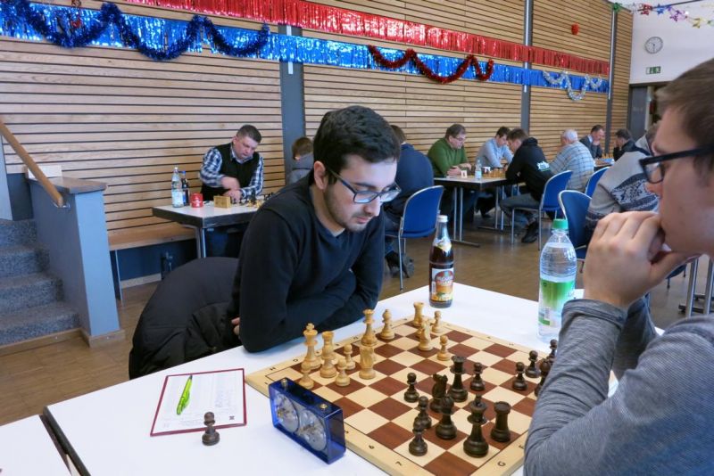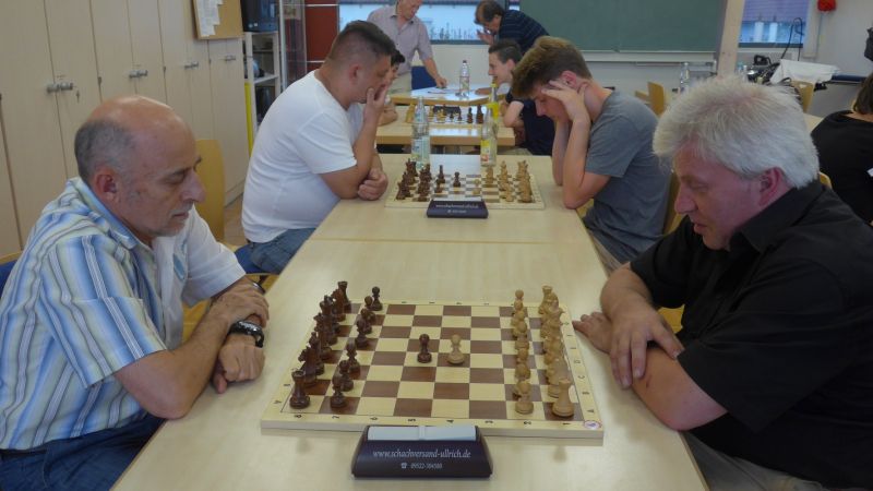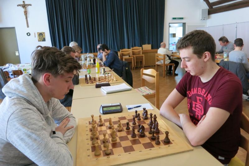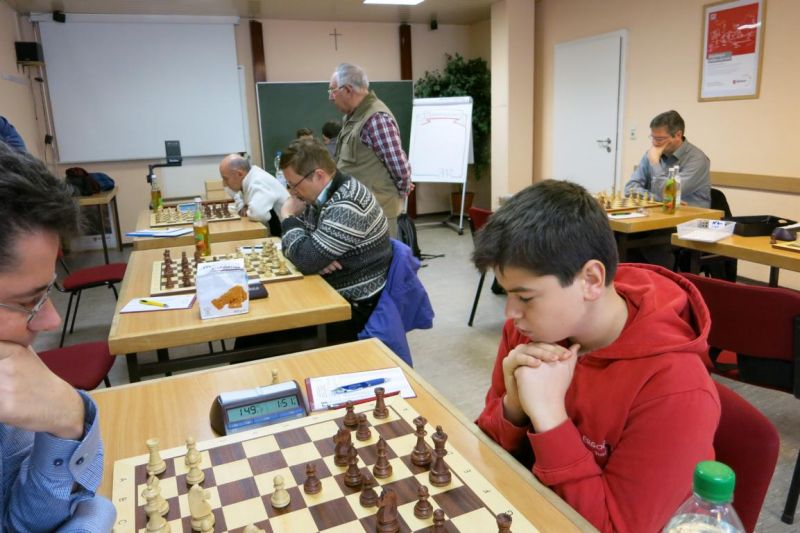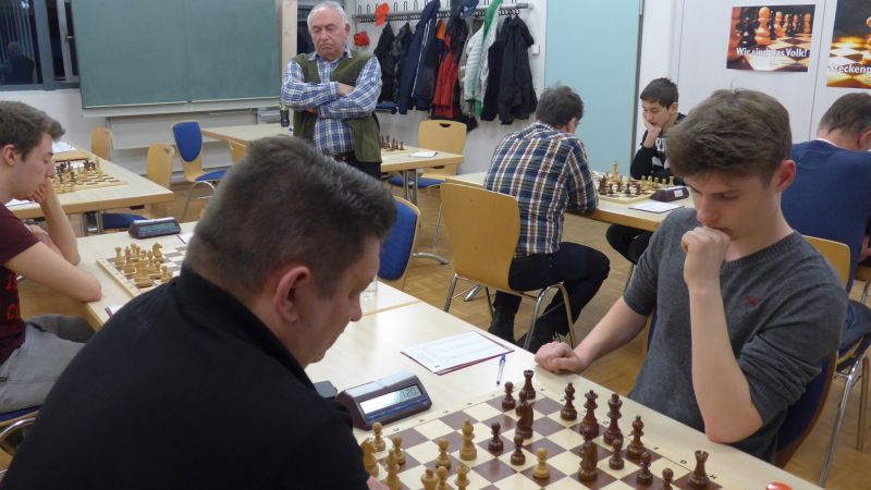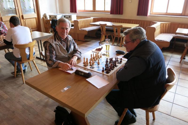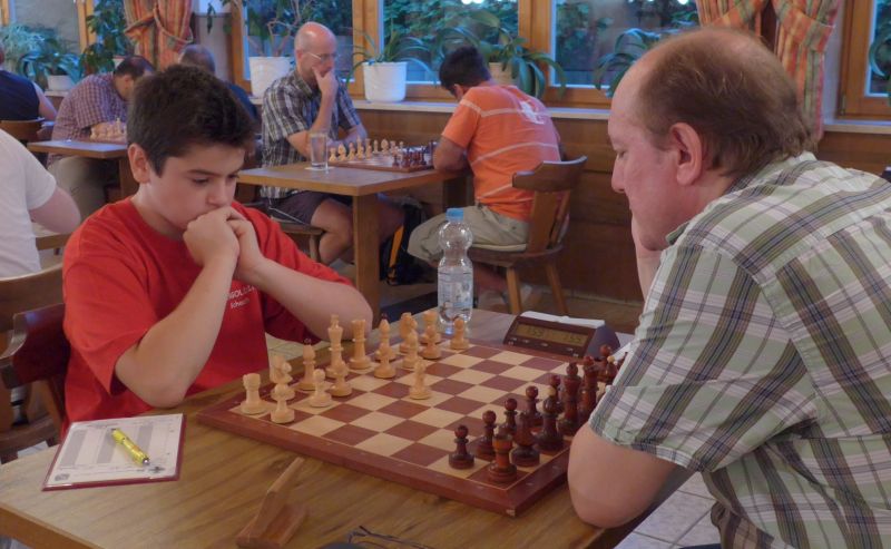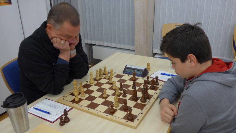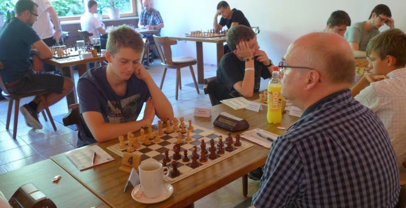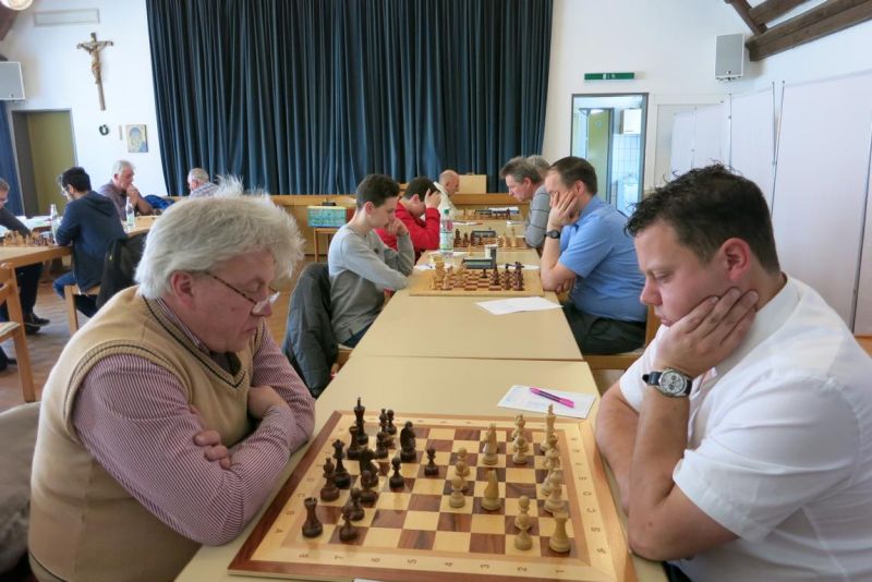 Pech für Daniel, dass er gleich in der ersten Runde spielfrei hatte, weil er mit seinen 1755 DWZ gerade noch als Letzter in die A-Gruppe geraten war. Sebastian (1893 ELO) lieferte IM Alexander Maier (SC Gröbenzell, 2277) einen spannenden Kampf, unterlag aber zuletzt doch. Waldemar (2078) besiegte Peter Sierian (ESC Pocking, 1813) sicher. In der zweiten Runde trotzte Waldemar IM Maier in einer Zeitnotschlacht ein Remis ab. Daniel verlor gegen Stephan Gießmann (SK Kelheim, 2265) im Mittelspiel einen Bauer, und das reichte dem Kelheimer, wenn auch knapp. Sebastian unterlag überraschend gegen Sierian. In der dritten Runde verlor Waldemar gegen Uwe Kleibel (SV Röhrnbach, 2212), Daniel besiegte Alexander Nöckler (SK Weiden, 1887) und Sebastian holte gegen Christoph Schultes (SK Landau-Dingolfing, 2013) ein Remis heraus. Aber mit diesem halben Punkt war er nach drei Runden Tabellenletzter und musste in der vierten Runde aussetzen. Daniel hatte die Ehre an Brett 4 gegen GM Leonid Milov (2447) antreten zu dürfen, aber er war leider bald ohne Chance. Waldemar spielte gegen Tim Schmitz (SC Sendling, 1817) nur Remis. In der fünften und letzten Runde trennten sich Daniel und Waldemar mit Remis und ebenso Sebastian mit Willibald Haimerl (SV Deggendorf, 1763). Die vorläufige DWZ-Auswertung ergab für die drei Ergoldinger: Waldemar -10, Sebastian - 28, und der große Gewinner war Daniel mit + 38.