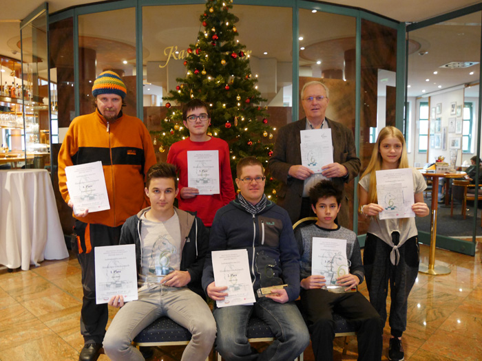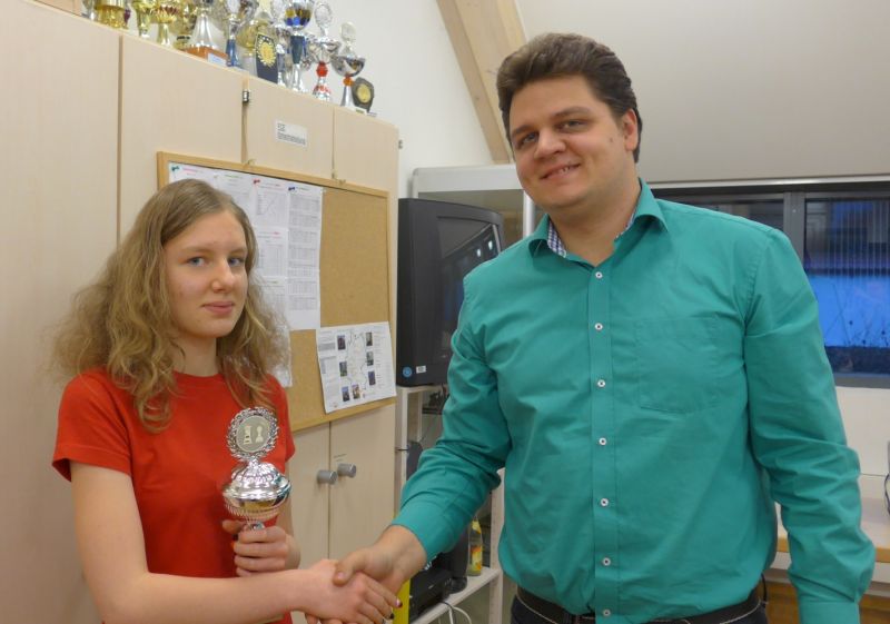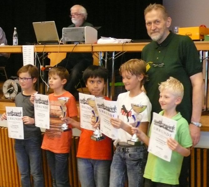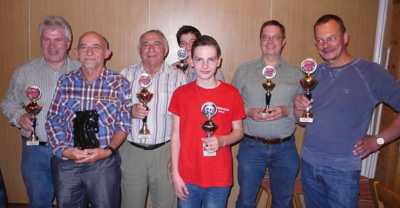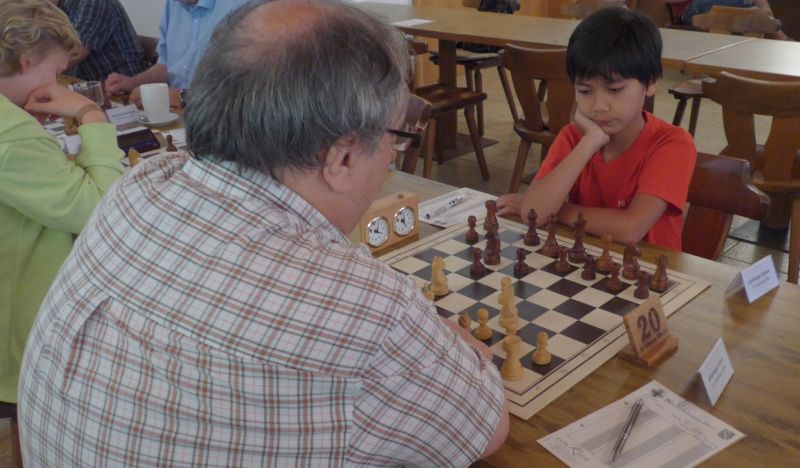 Der 5. Rang von Ronald Kühne (1685) mit Startnummer 6 war ok, DWZ - 1. Seine Tochter Maria (1654), die zwar mit einem Sieg und vier Remis ungeschlagen blieb, aber doch 44 DWZ-Punkte verlor. Noch gehöriger unter die Räder kam Vorjahressieger Henrik Fesl (1643), der mit einem Sieg, drei Remis und einer Niederlage gleich 80 DWZ abgeben musste. Geringe Verbesserungen zeigten Christoph Fronhöfer (1461), der den U18-Pokal der B-Gruppe gewann) mit + 4, Aditya Tarade (1088) mit + 40, der esrt 9-jährige Simon Lichtinger (953) mit + 13 und Stefan Mundani (990) mit + 16. Viraj Tarade (-) und Andy Zhang (860) - 8, gewannen je einmal. Ein alles in allen gelungener Saisonauftakt!