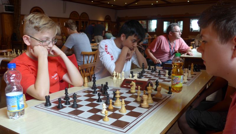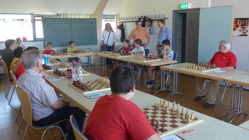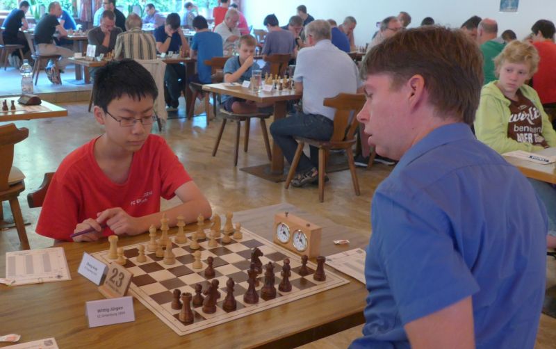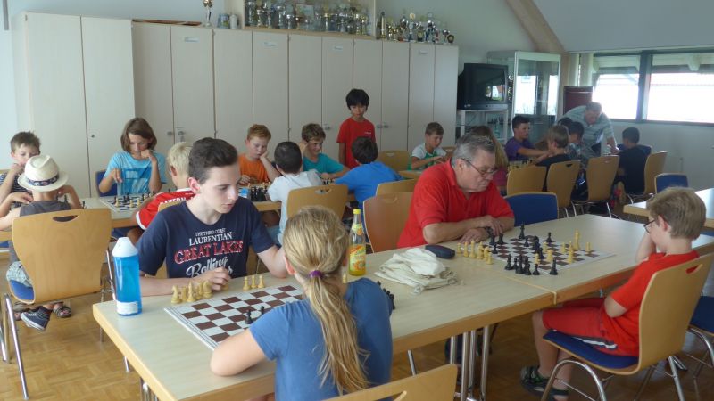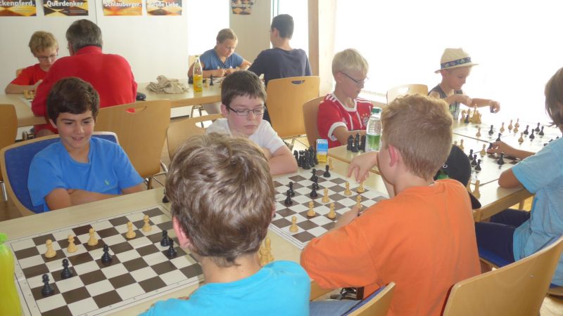 Wie immer schafften die rührigen Ortenburger ein perfekt organisiertes Turnier auf die Beine zu stellen. Die Rekord-Teilnehmerzahl vom Vorjahr (78) wurde mit 75 Teilnehmern nur knapp verfehlt. Die Spieler wurden in zwei Gruppen eingeteilt, über und unter 1750 DWZ. Im A-Open waren es 25 (leider ungerade und dadurch immer einer spielfrei) und im B-Open 50 Teilnehmer. Die mitreisenden Eltern nützten das herrliche und sehr warme Wetter für Ausflüge in die Region und bis nach Passau.