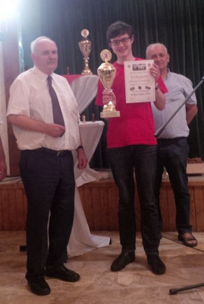 Niklas war in der 1. Runde noch nicht ganz bei der Sache und verlor. Die beiden weiteren Niederlagen waren in der 4. Runde gegen den späteren Turnier-Sieger Benedikt Racky (SK Wasserburg) und in der 6. Runde gegen Heinrich Grunert (SK München Südost, 721). Mit vier Punkten wurde Niklas sehr guter Fünfter.
