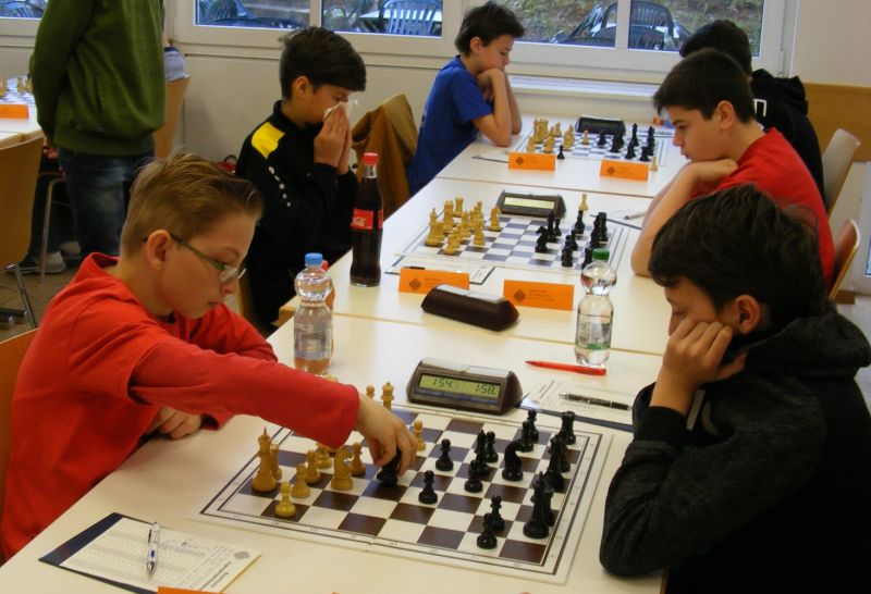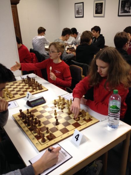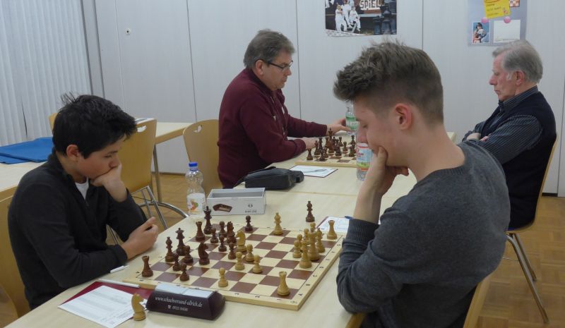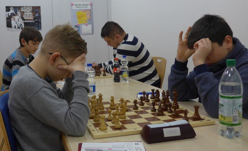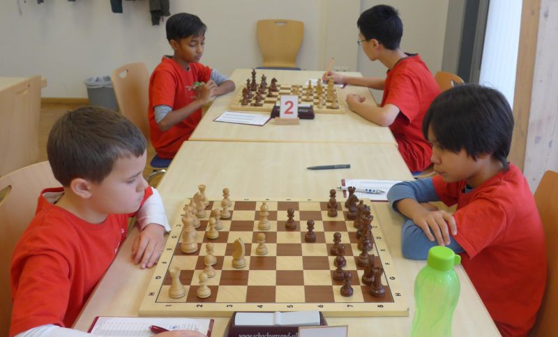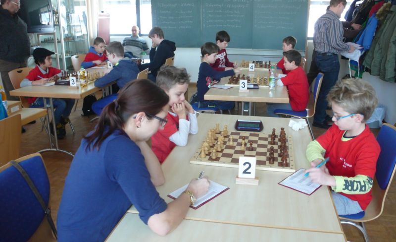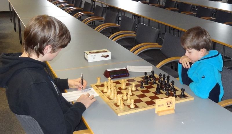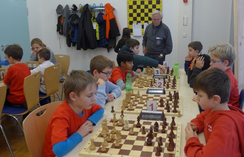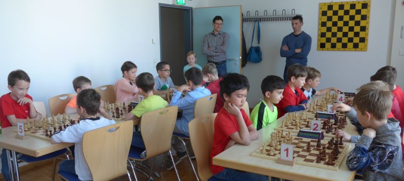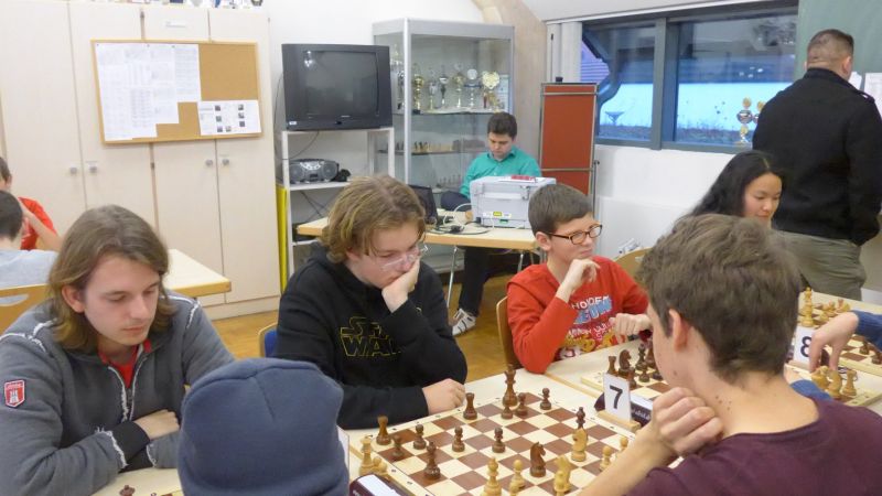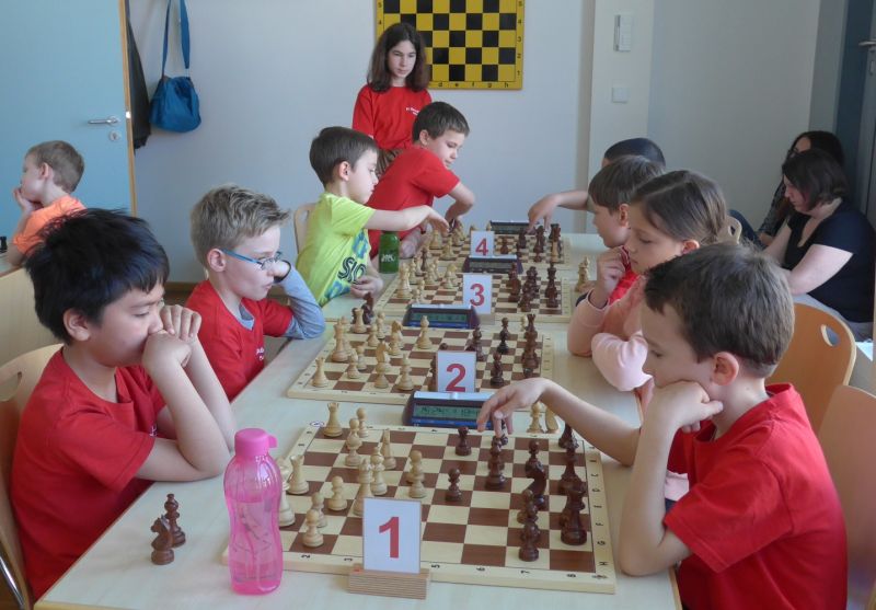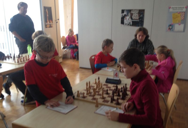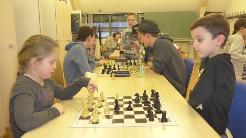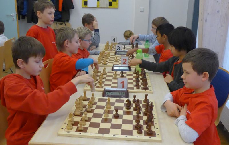 Nach 15 Minuten hatte an Brett 3 Dominik Lieder (792) gegen die für einen erkranken Spieler eingesprungene erst 6-jährige Laura Huber gewonnen, obwohl er sich im 17. Zug einen Dameneinsteller leistete. Laura hat natürlich leider noch nicht das Schachgrundwissen um diesen Vorteil ausnützen zu können. An Brett 1 und 2 gabs klare Siege für Simon Lichtinger (984) und Andy Zhang (849), aber an Brett 4 musste Christopher Jessen gegen Neuling Kilian Kourim mächtig kämpfen um nach 78 Zügen und 64 Minuten zu gewinnen.