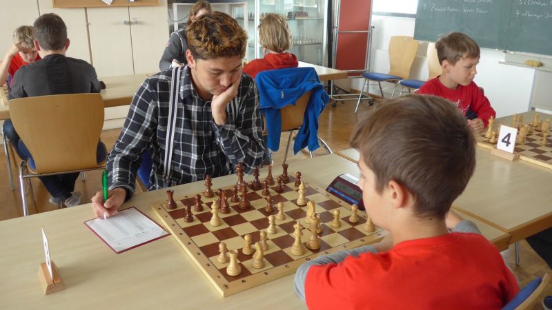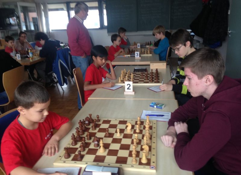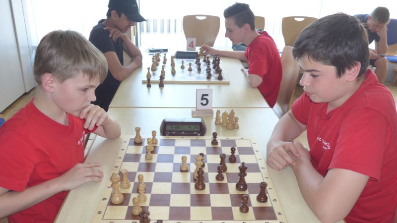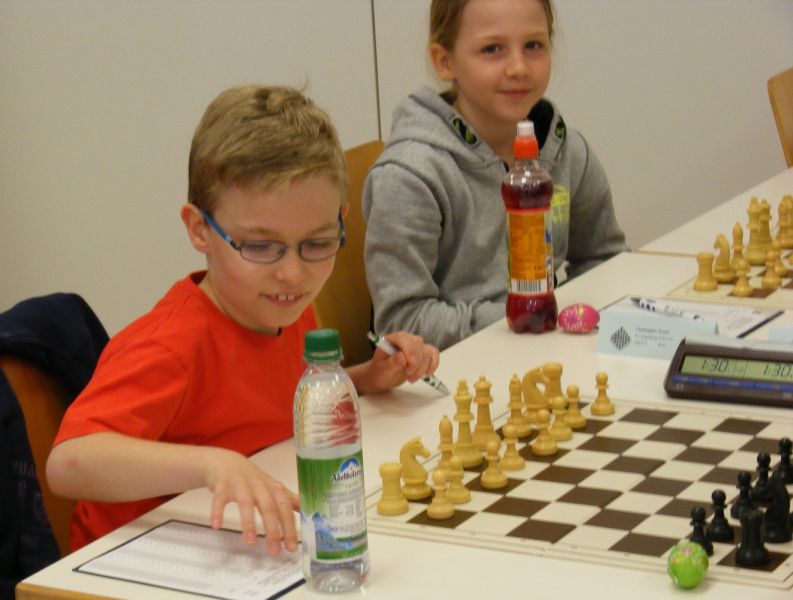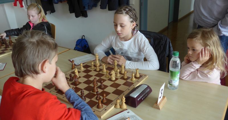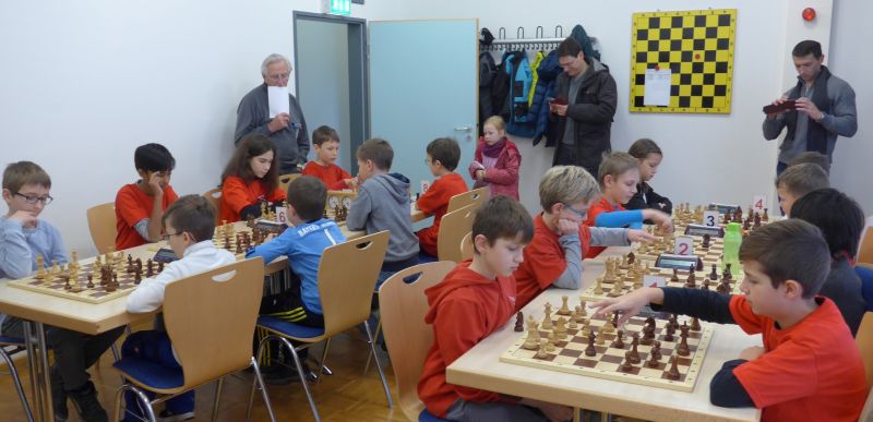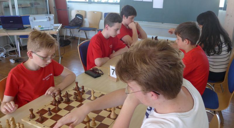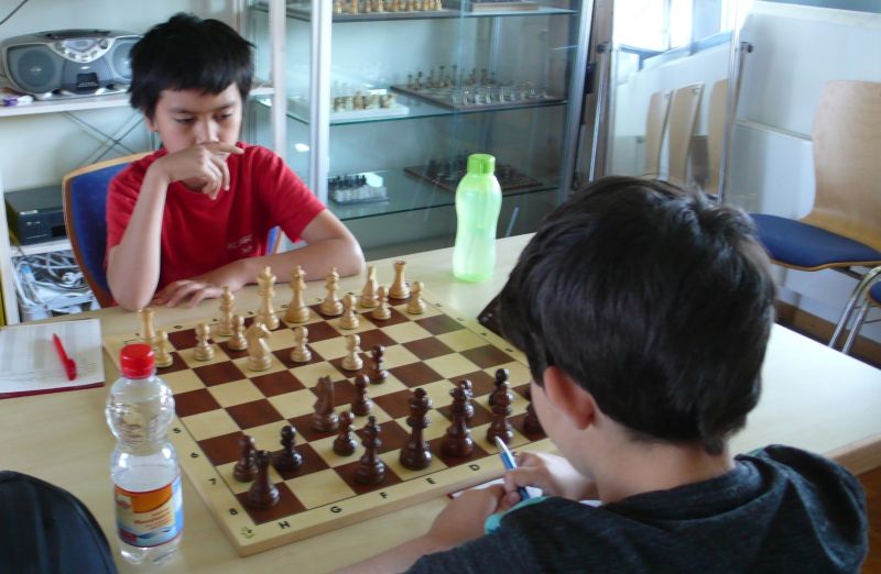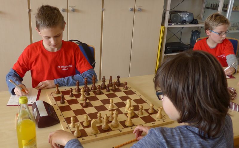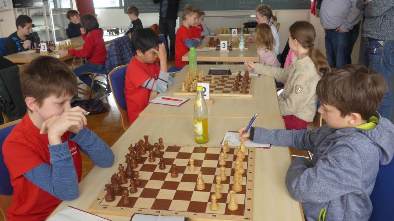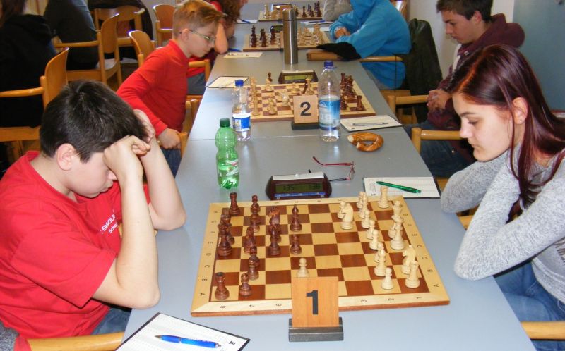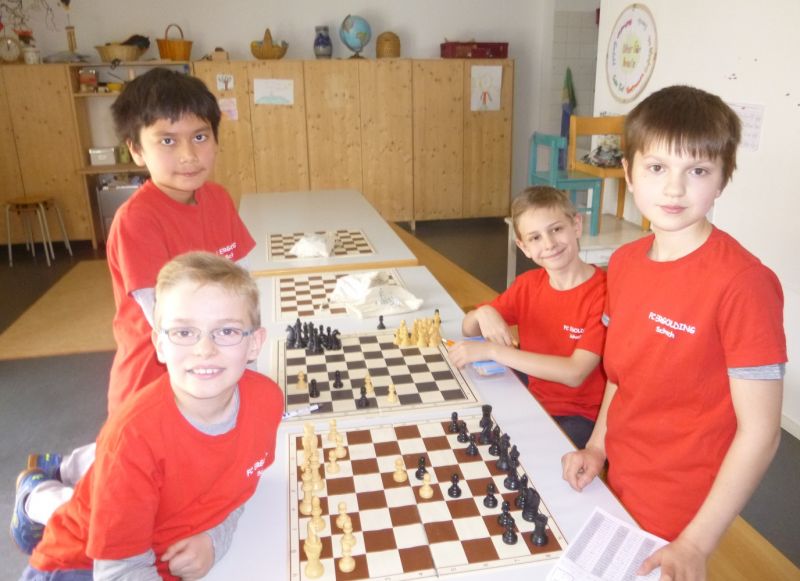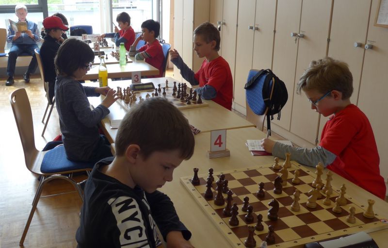 Nach 15 Minuten hatte an Brett 3 Dominik Lieder (792) gegen die für einen erkranken Spieler eingesprungene erst 6-jährige Laura Huber gewonnen, obwohl er sich im 17. Zug einen Dameneinsteller leistete. Laura hat natürlich leider noch nicht das Schachgrundwissen um diesen Vorteil ausnützen zu können. An Brett 1 und 2 gabs klare Siege für Simon Lichtinger (984) und Andy Zhang (849), aber an Brett 4 musste Christopher Jessen gegen Neuling Kilian Kourim mächtig kämpfen um nach 78 Zügen und 64 Minuten zu gewinnen.