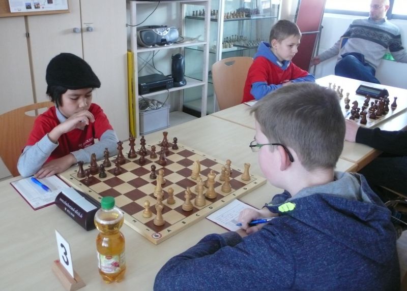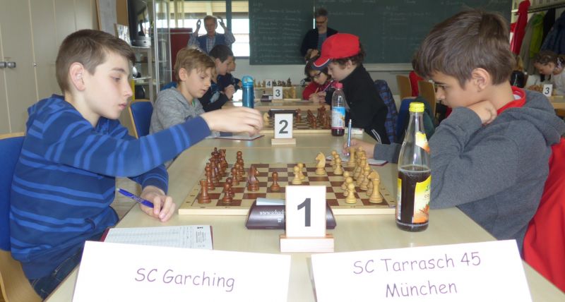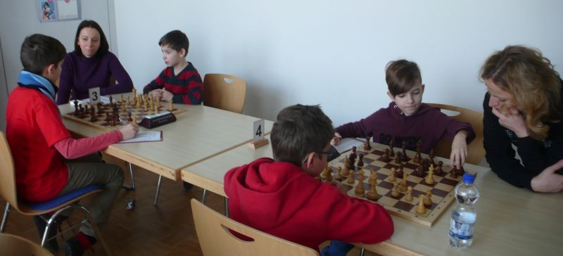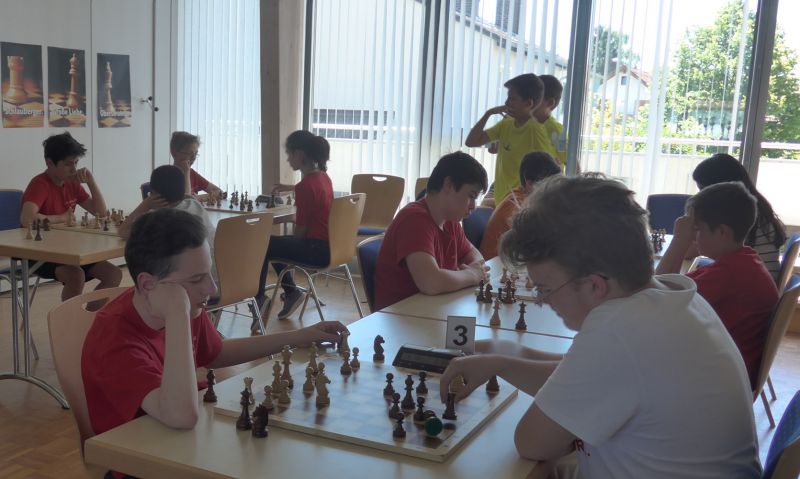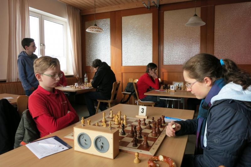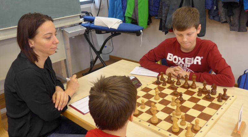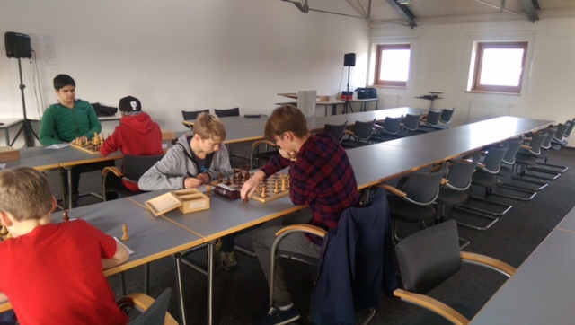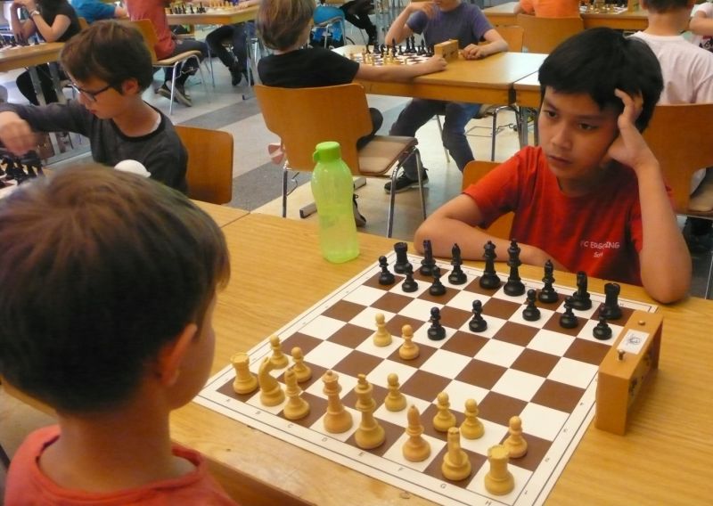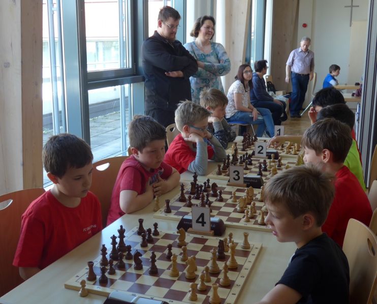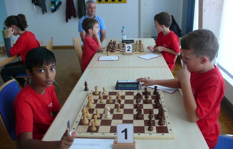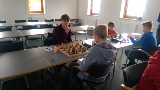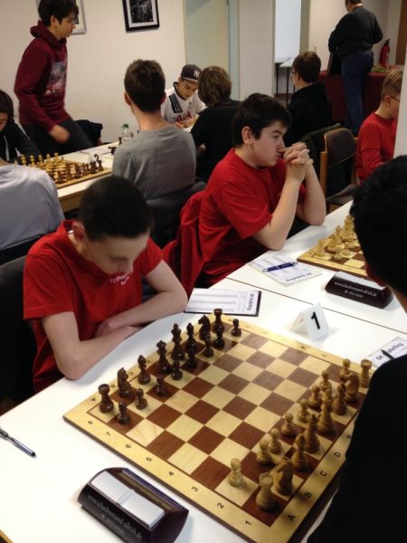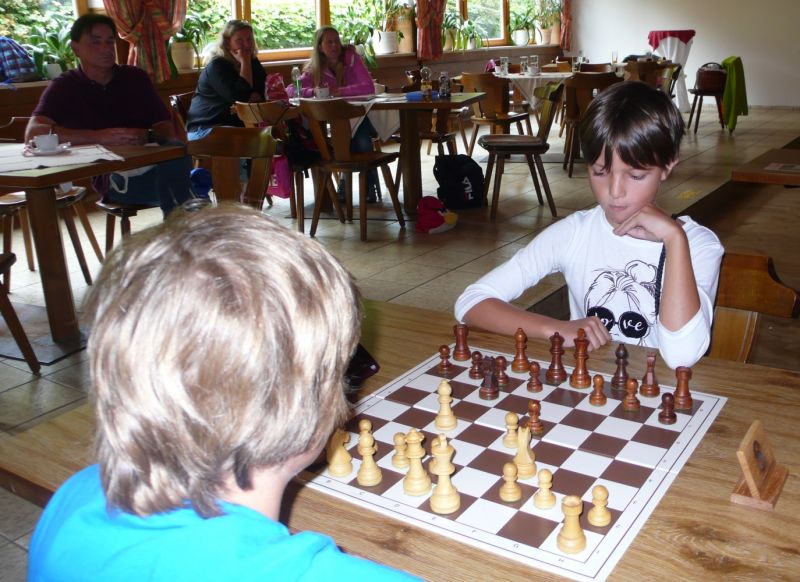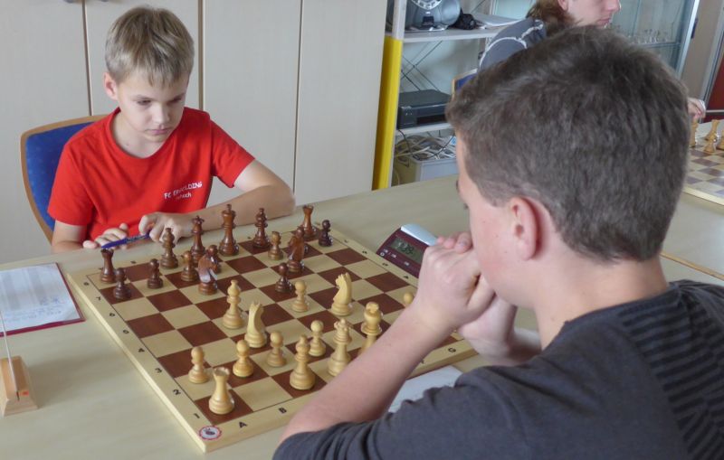 Nach 15 Minuten hatte an Brett 3 Dominik Lieder (792) gegen die für einen erkranken Spieler eingesprungene erst 6-jährige Laura Huber gewonnen, obwohl er sich im 17. Zug einen Dameneinsteller leistete. Laura hat natürlich leider noch nicht das Schachgrundwissen um diesen Vorteil ausnützen zu können. An Brett 1 und 2 gabs klare Siege für Simon Lichtinger (984) und Andy Zhang (849), aber an Brett 4 musste Christopher Jessen gegen Neuling Kilian Kourim mächtig kämpfen um nach 78 Zügen und 64 Minuten zu gewinnen.