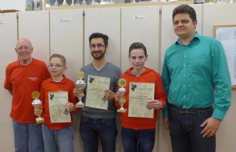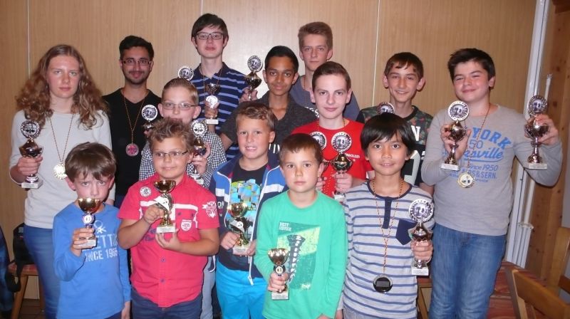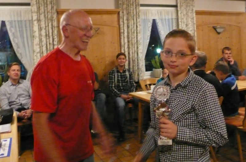 Der Versammlungsraum platzte aus allen Nähten, es mussten zusätzliche Stühle reingebracht werden, als Abteilungsleiter Eckart Dietl am Dienstagabend um 19:02 in den Ergoldinger Stuben die 37 Mitglieder (davon 23 Jugendliche und Kinder und deren Eltern) zur Mitgliederversammlung der Schachabteilung begrüßte. Unter ihnen auch der 1. Vorsitzende des FC Ergolding, Josef Loibl, und der Niederbayerische MIVIS-Referent, Franz Hufnagl, der wie immer extra aus Regensburg anreiste. Um die Jugendlichen und Kinder baldigst mit ihren Eltern entlassen zu können (weil Schule am nächsten Tag) startete wie immer Jugendleiter Helmut Gmeinwieser mit seinem Tätigkeitsbericht. In 25 Minuten ließ dieser nochmal die vielen tollen Ereignisse der vergangenen Saison Revue passieren. Die FCE-Schachjugend startete bei 16 Meisterschaften und insgesamt bei 48 Events, hier nur die wichtigsten: Henrik Fesl gewinnt das B-Open in Ortenburg; U12-Team wurde Neunter bei den Deutschen Vereins-Meisterschaften mit Sebastian Astner, Maria Kühne, Patrick Sowka und Felix Handschuh; U20-FC Ergolding2 Niederbayernligameister mit Daniel Lichtmannecker, Sebastian, Maria und Patrick; Niederbayerische Meister: U16 Christoph Fronhöfer, U14: Daniel und U12: Patrick; Bayerische Jugendmeisterschaften U12: Dritter Sebastian - U14w: Dritte Maria; Deutsche Jugendmeisterschaften U12: großartiger Sechster Sebastian; U14-Team Bayerischer Meister mit Sebastian, Daniel, Patrick und Maria; U12-Team Bayerischer Vizemeister mit Sebastian, Patrick, Felix und Simon Lichtinger; Bayerischer Meister U12-Blitz: Sebastian und als absoluter Höhepunkt: Europameisterschaft in Prag - 93. Sebastian, der damit zu den besten 100 Schachspielern seiner Altersklasse in Europa zählt. Anschließend führte Gmeinwieser die Siegerehrung der Jugend-Vereinsmeisterschaften durch, wobei die ersten Drei jeder Altersgruppe mit Pokalen, die restlichen der U8 bis U12 mit Urkunden ausgezeichnet wurden. Dabei bekam natürlich der Vereinsjugendmeister aller Klassen, Daniel Lichtmannecker, den größten Pokal. Danach wurden unsere zwölf besten Jugendlichen mit vier Gold-, drei Silber- und fünf Bronzemedaillen belohnt, die für erfolgreiche Teilnahmen bei den Bayerischen Meisterschaften vergeben werden. Gold bekam unser Bayerisches Meisterteam U14, Sebastian, Daniel, Patrick und Maria, Silber erhielten Cora Klinkenberg, Felix und Simon und Bronze gabs für Ronny Rahman, Henrik, Johann Kollmeder, Christoph und Jonas Hammerl. Danach wurde von Eckart Dietl und Spielleiter Anton Königl die Siegerehrung für die Vereinsmeisterschaften der Erwachsenen durchgeführt. Die Pokale gingen an Vereinsmeister Borys Bilyavskyy, Vladimir Simin und Markus Mock, Schnellschach: Simin, Ronald Kühne und Sebastian, Blitz: Simin, Erich Kreilinger und Daniel. Statt der drei Pokale bekam Vladimir einen Keramik-Springer. Nachdem um ca. 20 Uhr unsere Jugendlichen und Kinder mit ihren Eltern den Heimweg angetreten hatten, wurde die Lage überschaubar, denn nur noch 14 Erwachsene und drei Jugendliche verfolgten die weitere Versammlung.