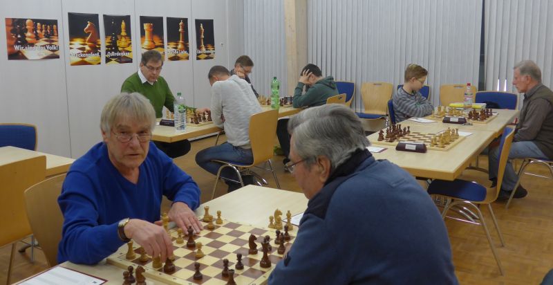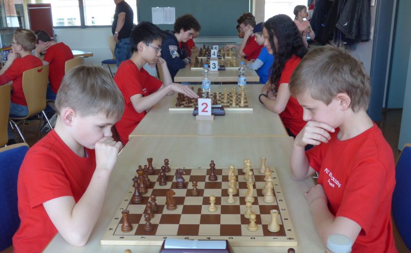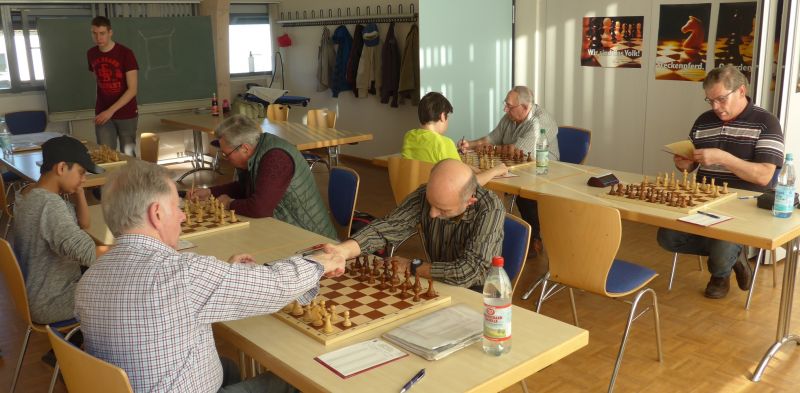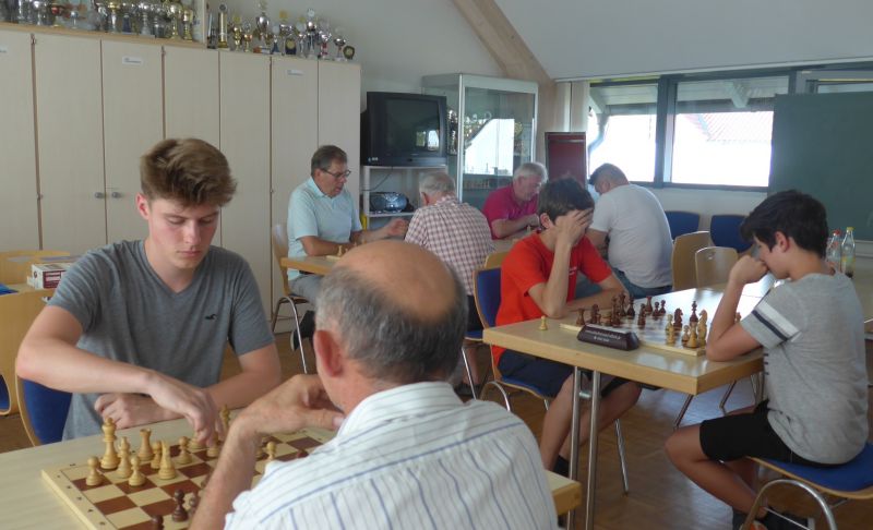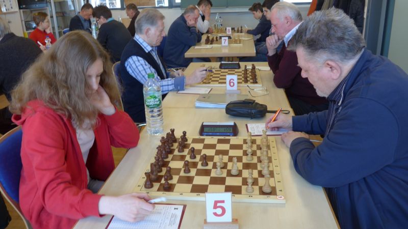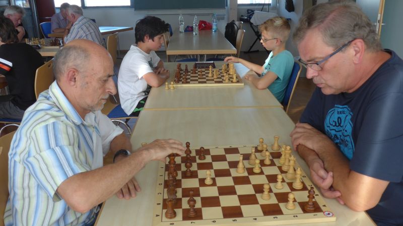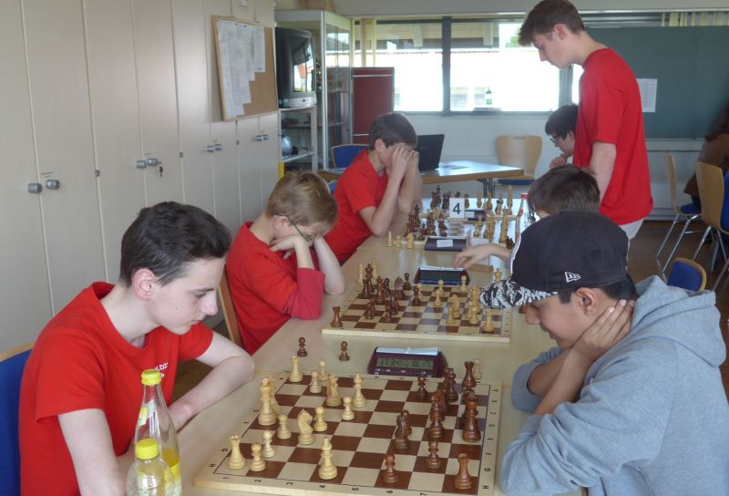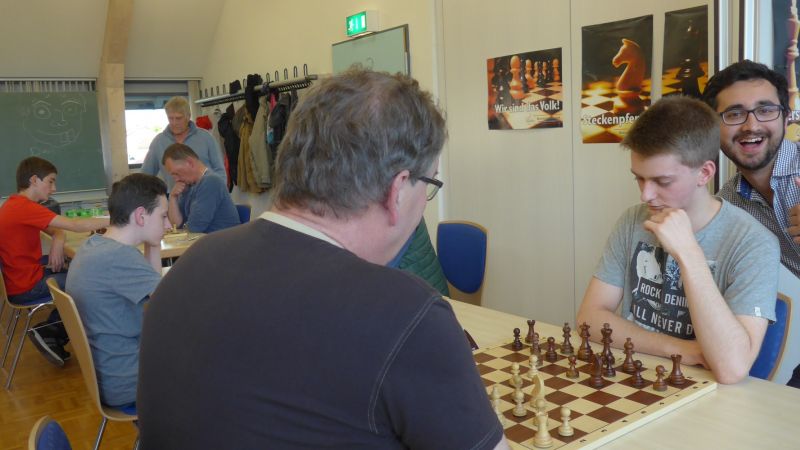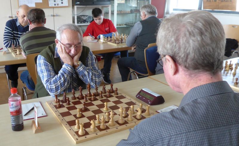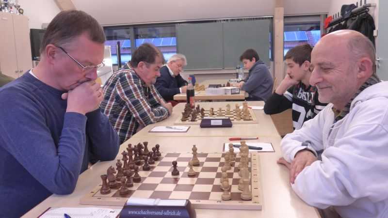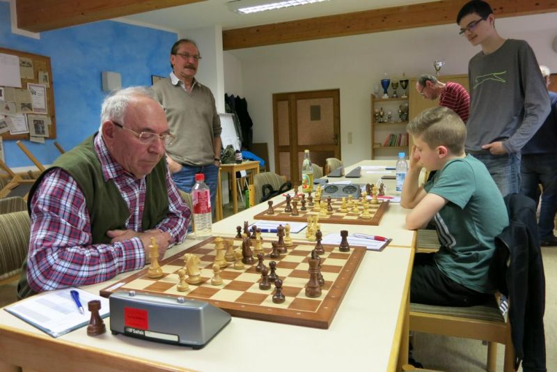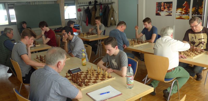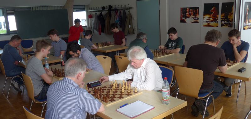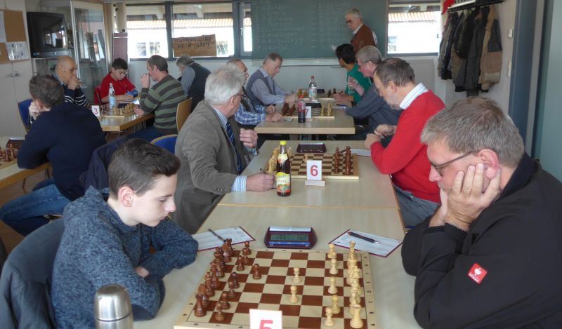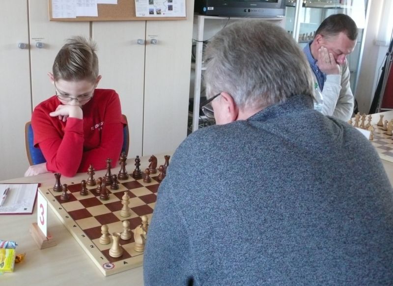 Die Vierte hatte natürlich keinerlei Probleme mit der Siebten und gewann locker nach insgesamt 48 Minuten und maximal 45 Zügen. Die "Kleinen" wehrten sich nach Kräften, aber keiner hatte wirklich eine echte Gewinn-Chance, der Leistungsunterschied war doch (noch) zu groß. Aber unsere siebte und achte Mannschaft sollen ja nur Erfahrungen und Spielpraxis sammeln.