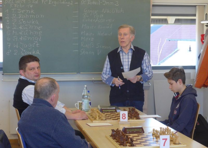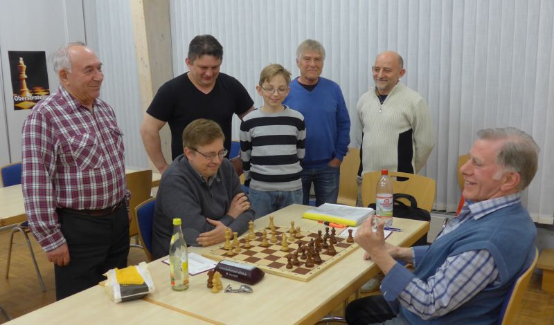 8 - Hans-Georg Brandstetter - Rafael Sowka 0:1 Italienisch, 25 Züge, 40 Min. Eine wüste Angriffspartie auf beiden Seiten mit dem Ergebnis für seinen überforderten jungen Gegenüber, der mit nur 908 DWZ zu Buche steht, vier Minusbauern und der Verlust von zwei Figuren waren zuviel des Guten, sicherer Punkt für Ergolding.
