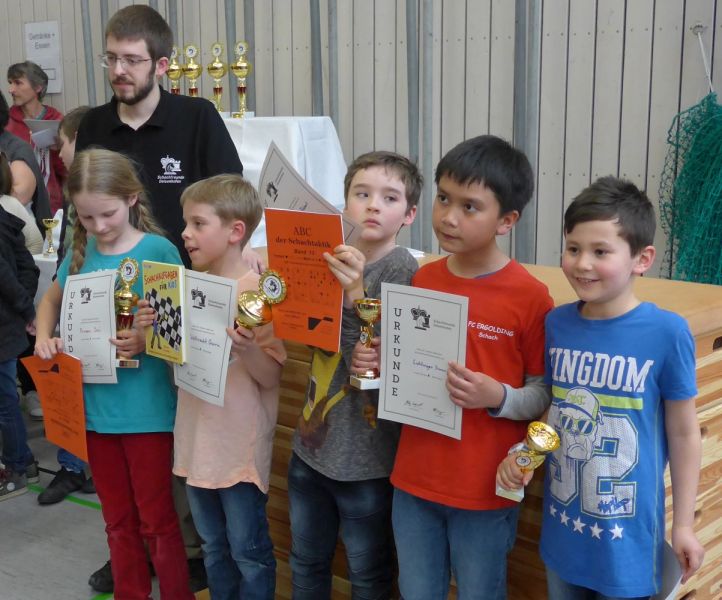 Jonas (986 DWZ) spielte mit Startnummer 9 ein recht gutes Turnier und besiegte u.a. in der ersten Runde Denny Lawrenz (SC Wolfratshausen, 1693), in der vierten Runde Nico Joebges (SC Tarrasch München, 1774) und wurde mit 4 Punkten guter Vierter. Anni (1020) hatte diesmal bei fast allen Partien erhebliche Zeitprobleme.