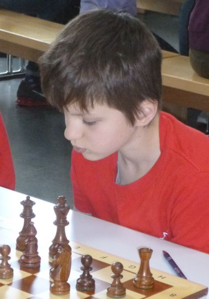 Unsere "Kleinen" der Fünften kamen aus dem Rottal mit einem souveränen 4:0 nach Hause. Andy Zhang (849) gewann an Brett 2 nach nur 31 Minuten und 27 Zügen sicher. Ebenso Christopher Jessen an Brett 4 nach 35 Minuten und 31 Zügen mit einem Grundreihenmatt. Den Vogel schoss natürlich wieder Dominik Lieder (792) an Brett 3 ab, der für seine 60 Züge nur sieben (!) Minuten benötigte. Da waren natürlich viele Fehler drin, die sicher nicht so häufug passieren würden, wenn Dominik mehr überlegen würde. Aber am Ende reichte es dennoch leicht zum 3:0. Am Spitzenbrett zwischen Simon Lichtigner (984) und Vladislav Sharin (907) eine auf beiden Seiten bemerkenswert gute Partie. Im 15. Zug gewann Simon einen Bauer, im 24. und 25. Zug verschmähte er einen weiteren Bauerngewinn, weil ihm seine Königssicherheit wichtiger erschien. Im 29. Zug wickelte Simon wegen seinem Mehrbauer ins Endspiel ab und erstaunlich, wie der erst 9-Jährige seine 6 gegen 5 Bauern gewinnbringend nach vorne bewegte. Nach 42 Zügen und 1:15 Std. blieb dem Rottaler nur noch die Aufgabe.
