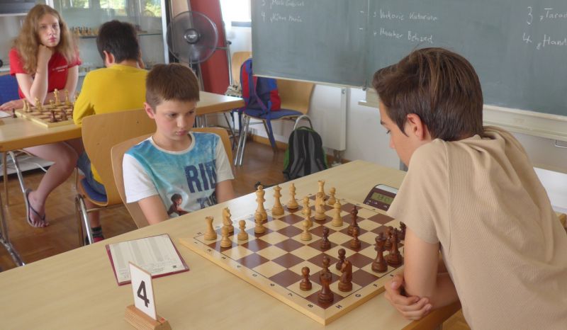 Gegenseitige Turmgeschenke an Brett 3 zwischen Peter M. Ebrahimi und Martin Vladimirov kennzeichneten diese Partie, die nach nur 39 Minuten und 41 Zügen mit einem Matt für Peter endete. An Brett 4 wurde erstmals Neuling Jakob Paringer eingesetzt, der erst viermal im Training war, aber schon ganz gut mit Jacob Königseder zurecht kam. Am Ende konnte Jacob seine Chance nicht nützen und bot nach 34 Zügen und 53 Minuten Remis, anstatt eine Figur zu gewinnen. Stefan Mundani (1008) hatte gegen David Häglsperger viel zu tun, gewann aber am Ende doch sicher nach 2:03 Std. und 70 Zügen. Am Spitzenbrett das gewohnte Bild: Anni Zhang (1020) überlegt und überlegt und hatte am Ende gerade noch 24 Sekunden auf ihrer Uhr gegen Viraj Tarade. Ok, sie gewann sicher nach 2:23 Std. und 51 Zügen, aber die Kiebitze kamen gehörig ins Schwitzen. Am Ende wars dann doch ein erwartet klarer 3,5:0,5-Sieg für die Vierte.