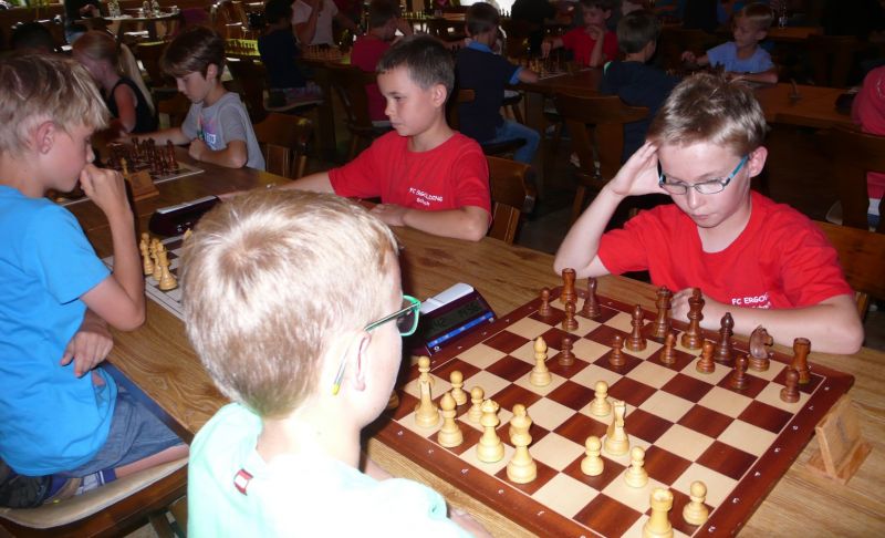 Bereits zum 16. Mal lud die Jugendabteilung zum Saisonabschluss im Rahmen des Ergoldinger Ferienprogramms zu einem Schachnachmittag ins Bürgerhaus ein. Mit 21 Teilnehmern, davon vier vom FCE, waren es etwas weniger wie im Vorjahr (32). Jugendleiter Helmut Gmeinwieser begrüßte die Kinder und Jugendlichen zwischen 6 und 16 Jahren. Danach ging es schon zur Sache und die Kinder konnten untereinander und mit Begeisterung ihre Kräfte am königlichen Spiel messen. Stellvertretender Abteilungsleiter Anton Königl, sowie Günter Zorn und der Jugendleiter, unterstützten vor allem die "Anfänger" mit wichtigen Tipps. Die zwei Stunden vergingen wie im Fluge, aber den Ferienkindern wurde angeboten, jeweils dienstags ab 16:30, auch während der Ferienzeit, an einem kostenlosen Schnuppertraining, teilzunehmen, Infos unter 0871-77800.