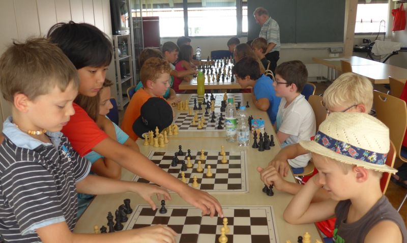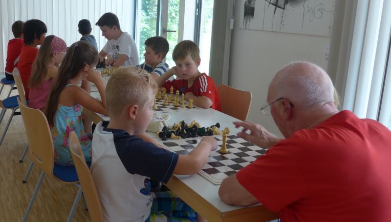 Im Rahmen des Niederaichbacher Ferienprogramms veranstaltete unsere FCE-Schachabteilung mit Jugendleiter Helmut Gmeinwieser bereits zum siebten Mal im Gemeinschaftshaus einen Schachnachmittag, an dem insgesamt elf Kinder/Jugendliche teilnahmen. Der Ergoldinger Trainer brachte sechs Nachwuchsspieler seines Vereins mit. Zu den angemeldeten vier Niederaichbacher Kindern kam noch ein ehemalige ortsansässiger Jugendspieler des FCE dazu. Bis auf zwei Kinder konnten alle schon mehr oder weniger gut Schachspielen, den beiden "Neuen" wurden die ersten Grundbegriffe übermittelt. Alle waren mit Begeisterung bei der Sache. Gegen Ende der Veranstaltung spendierte Petra Pusl wieder für jeden Steckerleis, was natürlich prima ankam. Sicher wird es auch in den nächsten großen Ferien wieder einen Schachnachmittag in Niederaichbach geben.