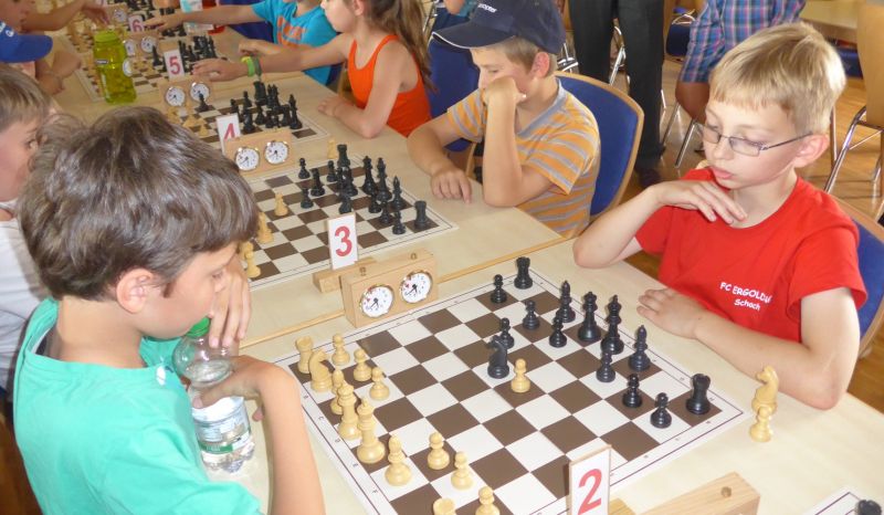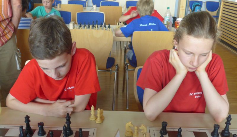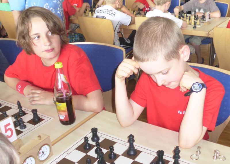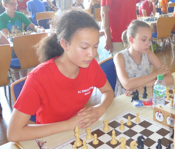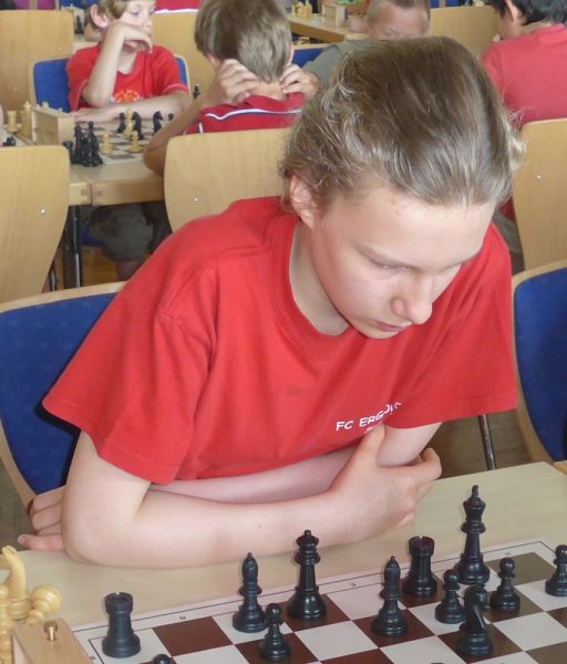 Mit 41 Startern war auch die U12-Klasse sehr gut besetzt und mit der Deutschen Meisterin der U10w, Vitalia Khamenya (SK Gräfelfing, 1376), und dem Dritten der Bayerischen Meisterschaften Igal Bergauz (SK München Südost, 1505) waren zwei renommierte Teilnehmer dabei. Igal gewann in der 4. Runde gegen Massimo Longo (SK Germering, 1454) der später auf dem 8. Platz landete. Daniel Lichtmannecker (FC Ergolding, 1459) besiegte in der 3. Runde Vitalia, kam aber in der nächsten Runde gegen Leon Fanninger (Oberndorf/Laufen, AUT, 1304) nicht über ein Remis hinaus. Daniel musste dann ein weiteres Remis gegen Igal einstecken, Igal lag weiter vorne. Mit einem Sieg in der 6. Runde gegen Massimo war Daniel wieder im Rennen, aber es reichte nicht ganz. Auch Igal spielte in der letzten Runde noch ein Remis gegen Nicolas Mooser (PSV Dorfen, 1426), aber er hatte im Ziel knapp die Nase vorn. Igal siegte bei Punktgleichheit mit je 17 Punkten, und blieb ebenso wie Daniel ungeschlagen. In der Buchholz blieb Igal mit 98:95 knapp vorne. Das beste Mädchen wurde Maria Kühne (FC Ergolding, 1102), die nach einer Niederlage gegen Igal in der 2. Runde und einem unnötigen Remis in der 4. Runde, weit hinten lag, aber dann mit drei Siegen in Folge noch auf den 4. Rang vorrückte, noch vor Vitalia und Julia Shvartsman (beide SK Gräfelfing). Weitere Ergoldinger: 13. Clemens Ottmair (1105), 15. Simon Pusl (908) und 17. Lukas Stessun (768), alle 12 Punkte.