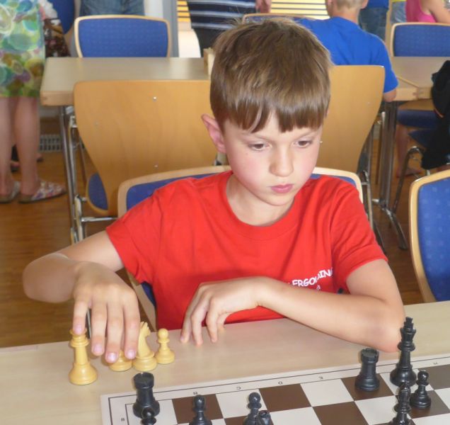 Das größte Teilnehmerfeld (46) verzeichnete die U10-Klasse. Sebastian Astner (FC Ergolding, 1413) wandelt auf den Spuren seines Vereinskameraden Henrik Fesl, der 2008 und 2009 zweimal hintereinander das U10-Turnier gewann. Nach seinem Vorjahressieg ging Sebastian diesmal als Turnierfavorit an den Start. Er gewann die ersten 6 Partien, und musste nur in der letzten Runde eine Niederlage gegen Maxwell Gan (SK Kolbermoor, 1164) einstecken. Aber es reichte knapp zum Sieg. Mit je 18 Punkte waren drei Spieler punktgleich (je 18 Punkte), aber Sebastian hatte mit 100 Buchholz die Nase klar vorn. Zweiter Thomas Loreth (Oberndorf/Laufen, AUT, 1256) mit 89 Buchholz und Dritter Maxwell mit 85 Buchholz. Auf Rang 4 der Bayerische Vizemeister Maximilian Lohr (TSV Mainburg, 1318) vor dem Ergoldinger Patrick Sowka (1244), beide je 16 Punkte. Bestes Mädchen war Eva Rudolph (Düsseldorfer SK, 1335) mit 15 Punkten auf Rang 7. Nicht ganz so gut lief es diesmal für den Ergoldinger Felix Handschuh (960) der mit 12 Punkten auf Platz 19 landete. Nicht weit dahinter schon Viraj Tarade, mit drei Siegen auf Rang 24.