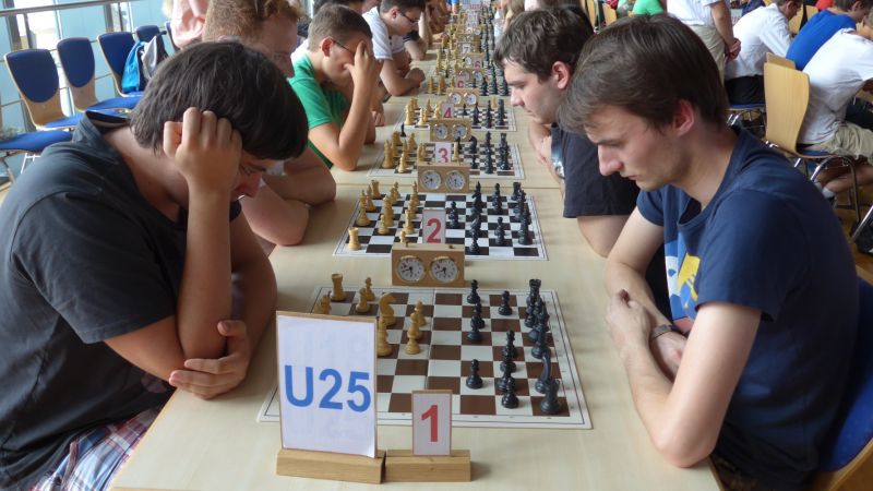 Ein sehr starkes Feld und mit 26 Teilnehmern in der U25-Klasse mehr als bei den Bayerischen U25-Meisterschaften heuer in Neumarkt. Und auch die Qualität des Feldes überzeugte: 6 Mann hatten über 2000 DWZ, insgesamt 12 über 1700 und 17 über 1600! Nach spannenden Kampf siegte, der schon dreimalige Ergoldinger-Open-Sieger, Bayerische und Deutsche Meister der U18, Florian Ott (SC Forchheim, 2222) mit 19 Punkten, knapp vor Roland Gruber (TSV Wacker Neutraubling, 2126) mit 18 Punkten und Johannes Pfadenhauer (TSV Bildlach Aktionär, 2066) mit 15 Punkten, der es sich nicht nehmen ließ, an seinem 18. Geburtstag die (einfach) 220 km nach Ergolding zurückzulegen. Vierter wurde der Bayerische U14-Meister Noam Bergauz (SK München Südost, 2181) vor dem Ergoldingopen-Sieger von 2010 und DWZ-Besten Thomas Niedermeier (SV Ilmmünster, 2224), beide ebenfalls 15 Punkte. Auf Rang 6 der Dritte der Bayerischen U14-Meisterschaft, sowie 15. der "Deutschen", Arshak Ovsepyan (SK Gräfelfing, 2050). Dann folgten überraschend weit vorn Lokalmatador Tobias Denk (1766), der erst 11-jährige Arthur Kruckenhauser (Schachjugend Kundl aus Tirol, 1707) und der Ergoldinger Johann Kollmeder (1388), alle mit 12 Punkten. Dahinter dann Philipp Swoboda (SV Röhrnbach, 1998) mit 11 Punkten und Thomas Weiß (SV Deggendorf, 1789) mit 10 Punkten. Ebenfalls 10 Punkte sammelte die Bayerische Vizemeisterin der U18 und Achte der Deutschen U18-Meisterschaft, Melina Siegl (SW Nürnberg Süd, 1859), die als Zwölfte bestes Mädchen war. Der Ergoldinger Einser-Abiturient Ronny Rahman (1692) belegte ohne jegliches Training Rang 15.