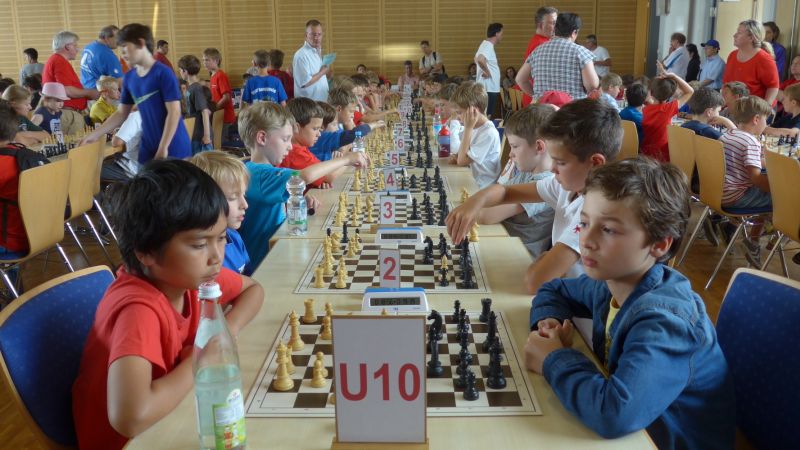 Auch die Klasse U16 war mit 37 Teilnehmern zahlreich vertreten und enorm stark besetzt. Marcel Daoud (SK Freising, 1933) hatte in Ergolding schon viermal gewonnen, Josef Sebastian Ott (SG Traunstein/Traunreut, 1986) schon zweimal und Pavel Haase (SK PORG Prag, 2103) schon zweimal. Ein harter Kampf um den Sieg war also angesagt. Am Ende hätte Lokalmatador Daniel Lichtmannecker, 1799) beinahe den dreien in die Suppe gespuckt, aber Haase konnte sich am Ende mit einem Sieg über Daoud mit 18 Punkten gerade noch ins Ziel retten und sich somit zum dritten Mal in die Ehrentafel der Ergolding-Open-Sieger eintragen. Bei einem Remis der beiden wäre Daniel wegen der besseren Buchholz der strahlende Sieger gewesen. So wurde er mit 16 Punkten hervorragender Zweiter, ein Remis gegen Ott und eine knappe Niederlage gegen Daoud, sonst alles gewonnen. Dritter Daoud, Vierter Sebastian Zieringer (SK Gräfelfing, 1574) mit 15 Punkten, Fünfter Ott, Sechster Arthur Wachtel (SK Freising, 1785), Siebter Yaroslav Yaroshenko (SK Gräfelfing, 1655), alle 14 Punkte. Auf Rang 16 folgte Aditya Tarade (1485) mit 12 Punkten und diesmal leider nur auf Rang 26 Dimitri Alexandrov (1398), knapp vor Jacob Königsberger (ohne DWZ), beide 9 Punkte. Das beste Mädchen war mit 10 Punkten Sabrina Heinze (SC Ammersee, 1341) auf Rang 20.
