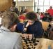 Die stimmungsvolle und zentral durchgeführte Ehrung auf der Bühne war gegen 17:15 zu Ende. Diesmal sparten wir uns den Transport des Siegerpodest vom Hallenbad, weil eine andere treppchenartige Gelegenheit als "Podest" zur Verfügung stand. Im nächsten Jahr wird wieder auf das Siegerpodest zurüchgegriffen. Für die weiteste Anreise (einfach 1060 km!), erhielt wieder Iancu-Ioan Sandea aus Cluj-Napoca (Rumänien), ein Reiseschachspiel. Jüngste Teilnehmerin war diesmal wirklich Laura Huber vom FC Ergolding, die mit einem Minipokal und einem Schachheft ausgezeichnet wurde. Als jüngster Teilnehmer wurde der 6-jährige Timofej Pawlov vom SC Bavaria Regensburg geehrt, der im U8-Turnier den 17. Platz der 25 Teilnehmer belegte. Der PSV Dorfen war zum vierten Mal hintereinander der auswärtige Verein mit den meisten Teilnehmern (diesmal wieder 14) und wurde dafür mit einem großen Pokal ausgezeichnet. Auch der SC Moosburg nahm mit ebenfalls 14 Teilnehmern dabe, hatte aber unter den ersten 8 nur 2 (Dorfen 3) Spieler. Nur der Gastgeber FC Ergolding hatte mit 32 Teilnehmer noch mehr Spieler und Spielerinnen am Start. Dann ging's zur Ehrung der jeweiligen Klassen und die ersten Acht jeder Altersklasse und das beste Mädchen wurden auf die Bühne gebeten. Die jeweils ersten Drei und das beste Mädchen jeder Klasse erhielten Pokale, die Vierten bis Sechsten Minipokale und die ersten Acht der U8 bis U12 Urkunden. In den Klassen U8 und U10 bekamen alle Teilnehmer eine "Ich war dabei"-Urkunde.